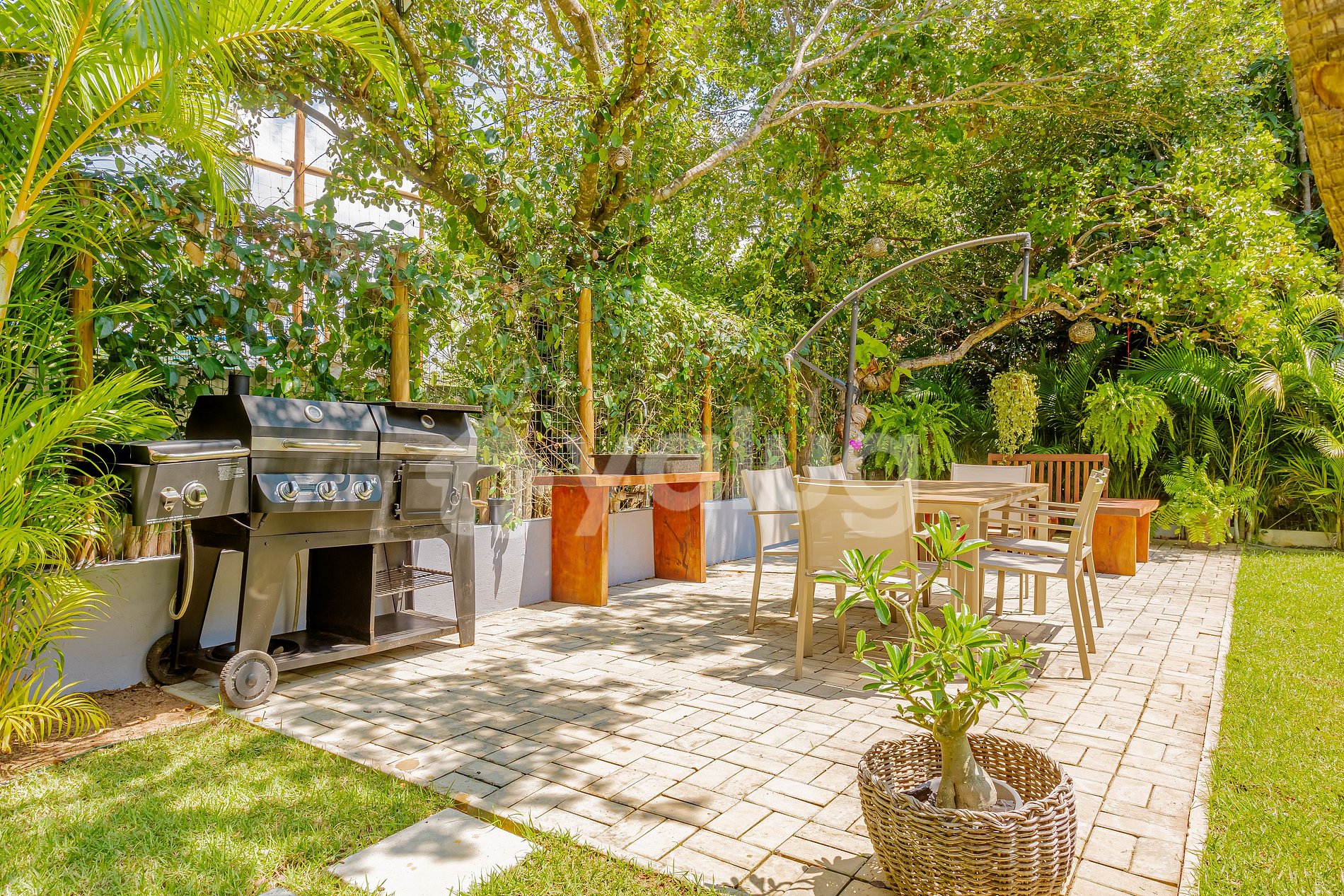 A área gourmet é equipada, ideal para churrascos, com piscina, rede de descanso e jardim.