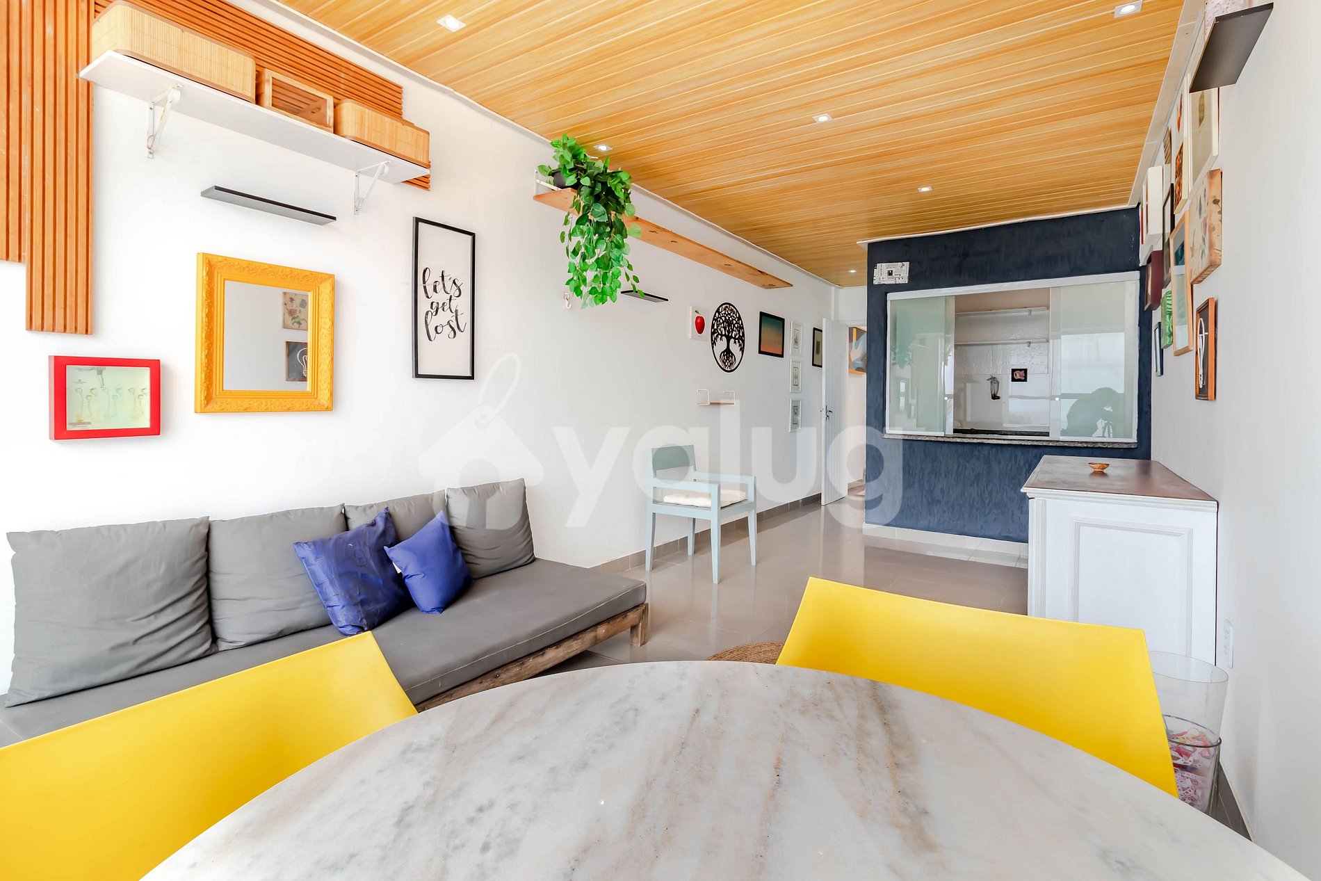 O apartamento quarto e sala dispõe de ar condicionado tipo Split no quarto, armários, além de uma decoração especial feita pelo designer Nino Nogueira, que entrega o apartamento repleto de arte e bom gosto.