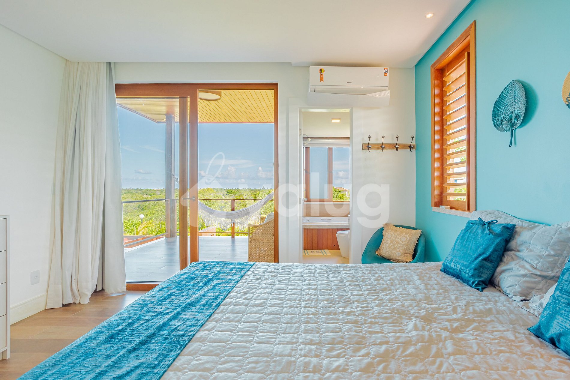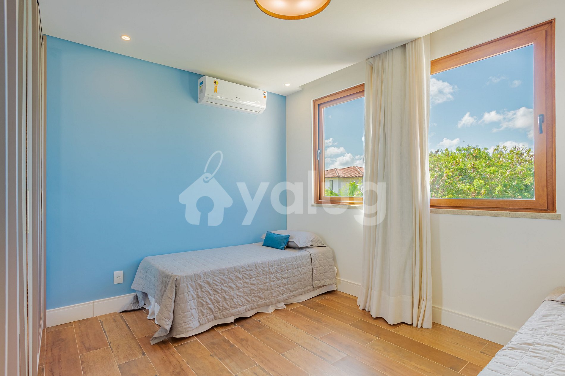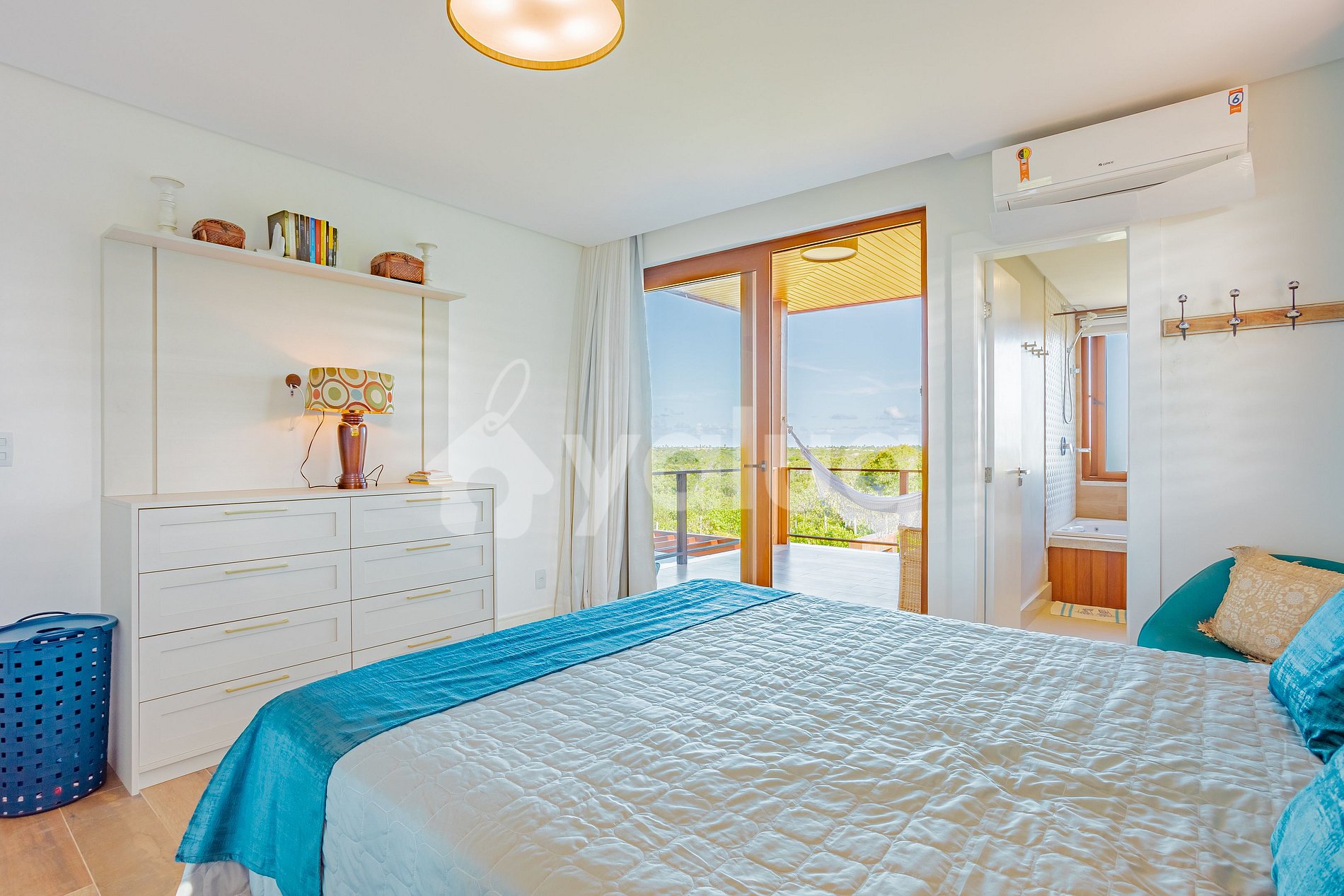 Suíte 4 ( Terréo): 1 cama casal, varanda, ar-condicionado, cortina, black out e armário.