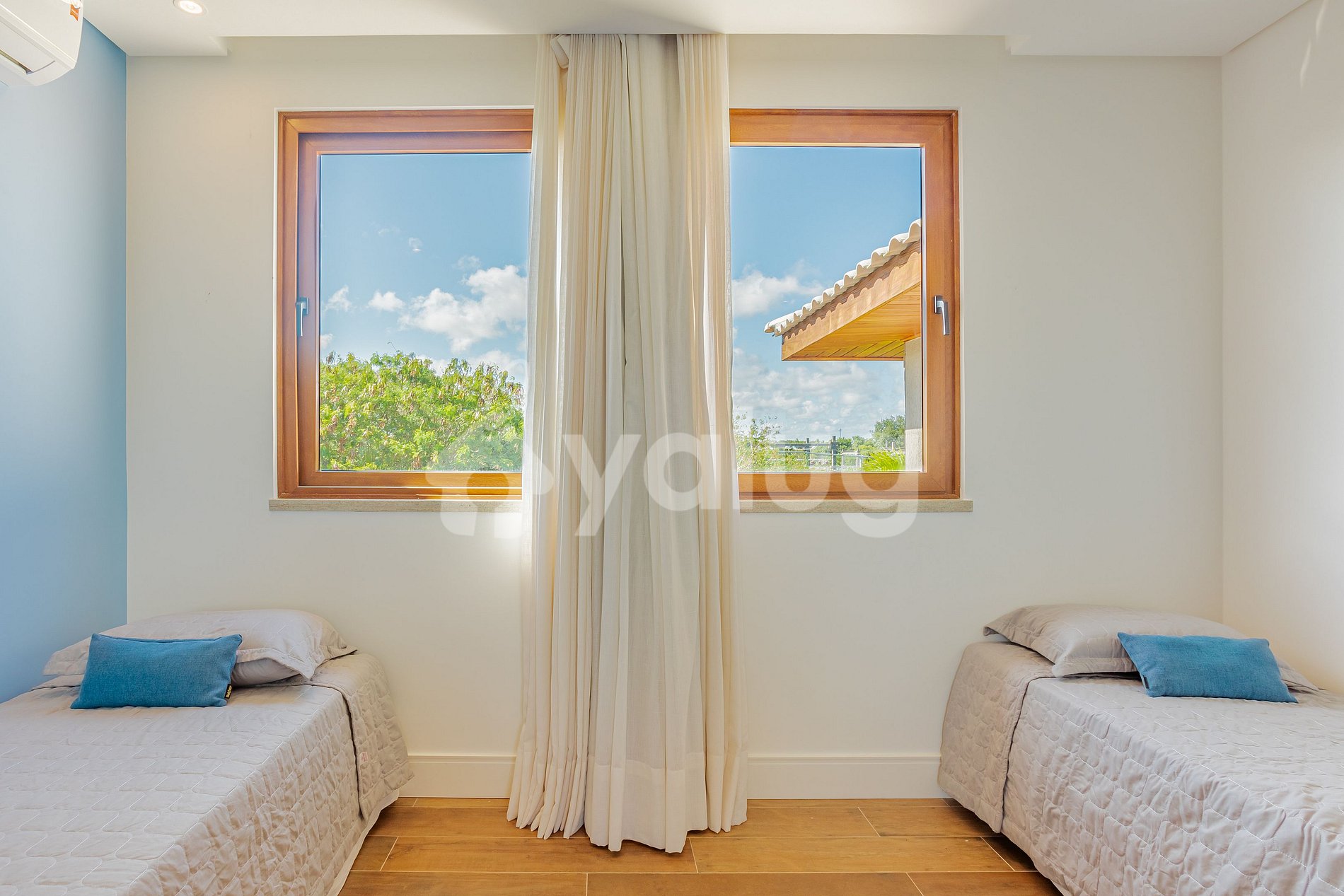 Suíte 1 (Superior): 1 cama casal, ar-condicionado, cortina, black out e armário.