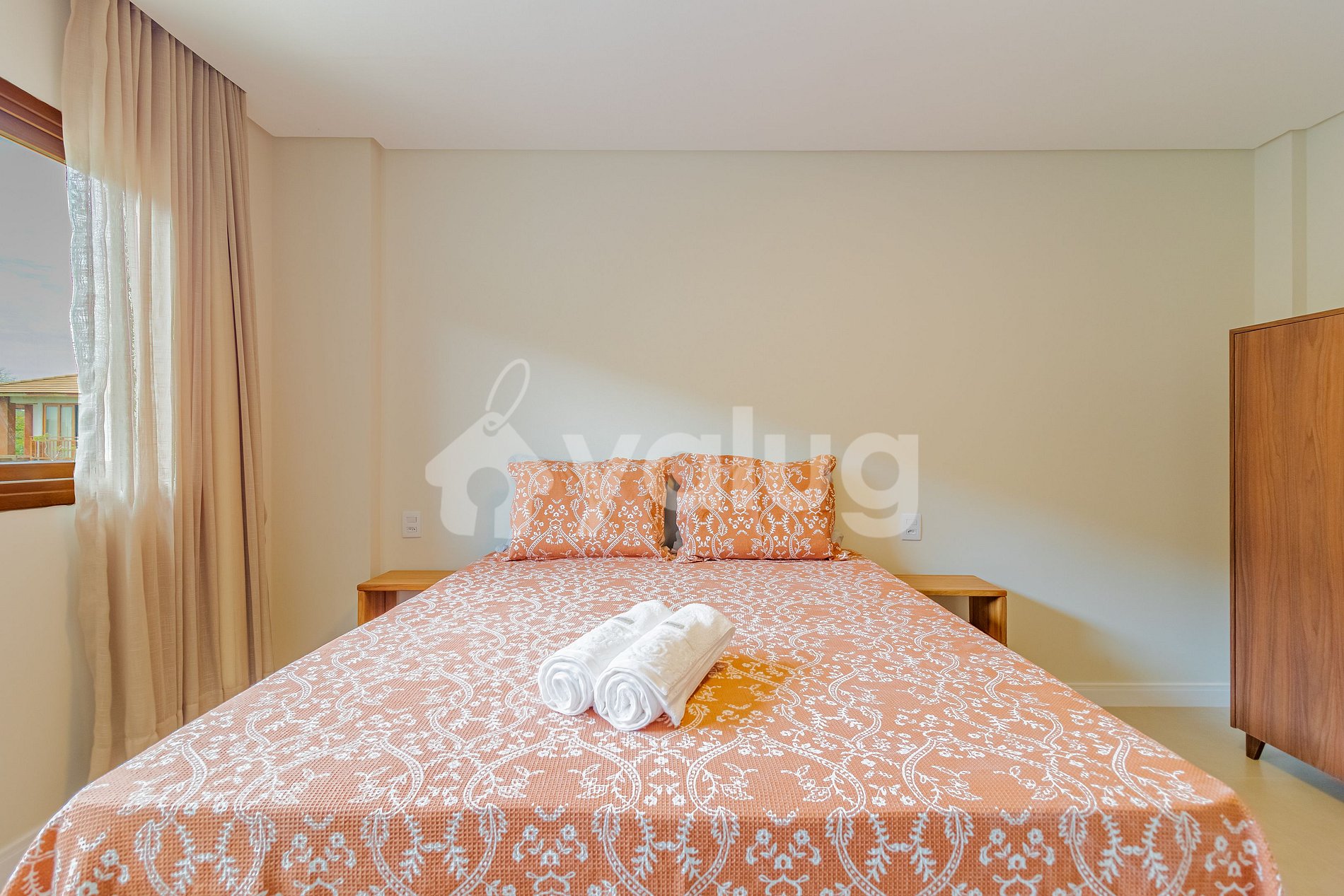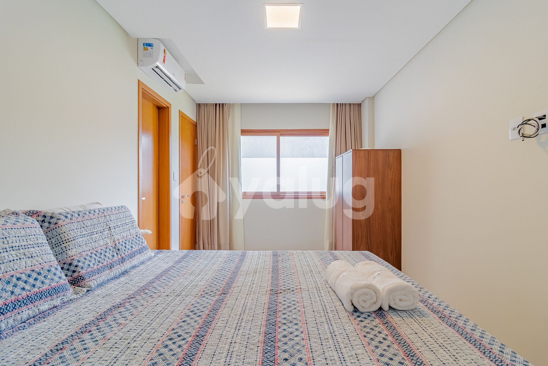 Suíte 2 (Térreo): 1 cama queen, ar condicionado split, armário e cortina blackout;