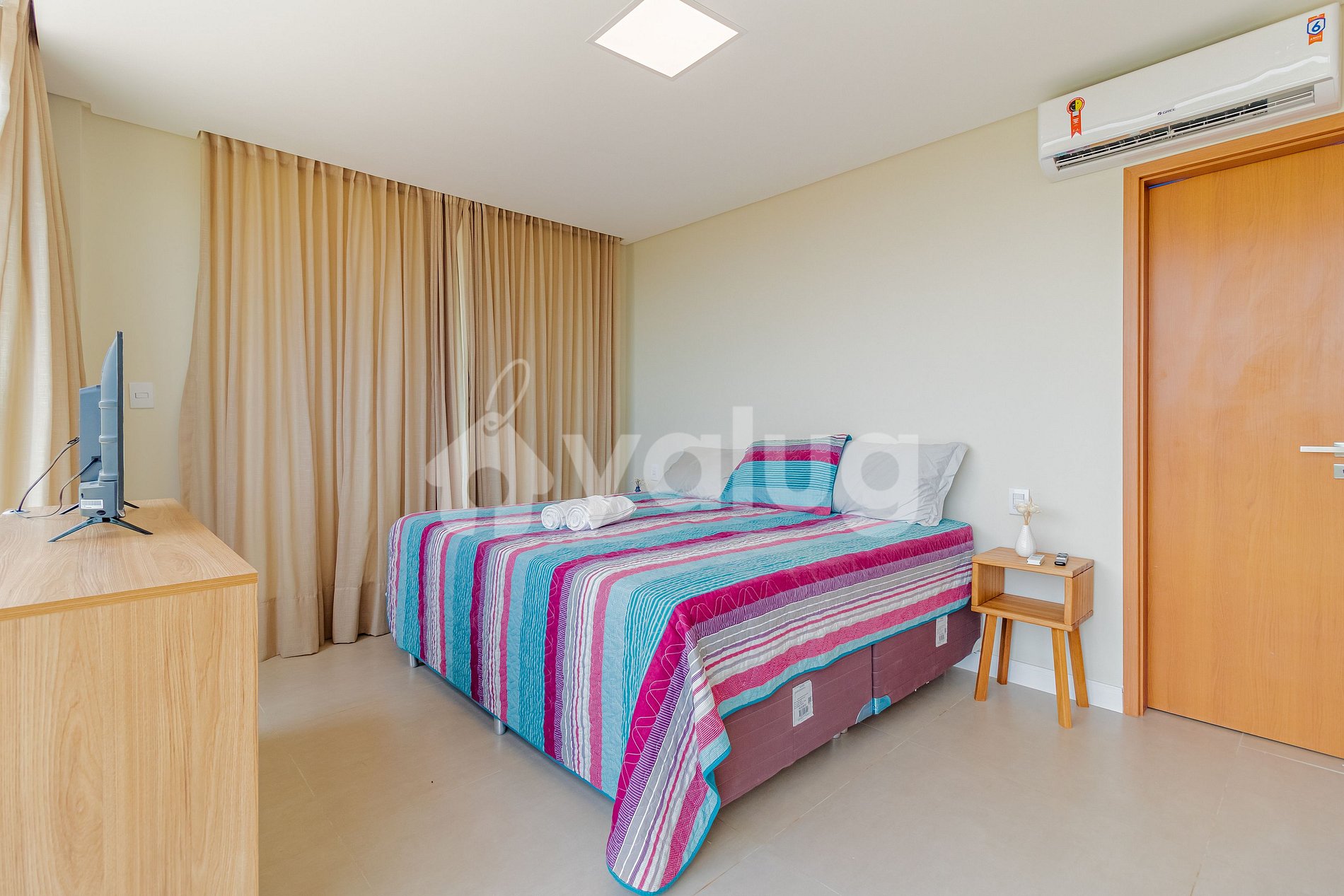 Suíte 4 (Superior): 1 cama super king, ar condicionado split, armário, cortina blackout e Smart Tv;