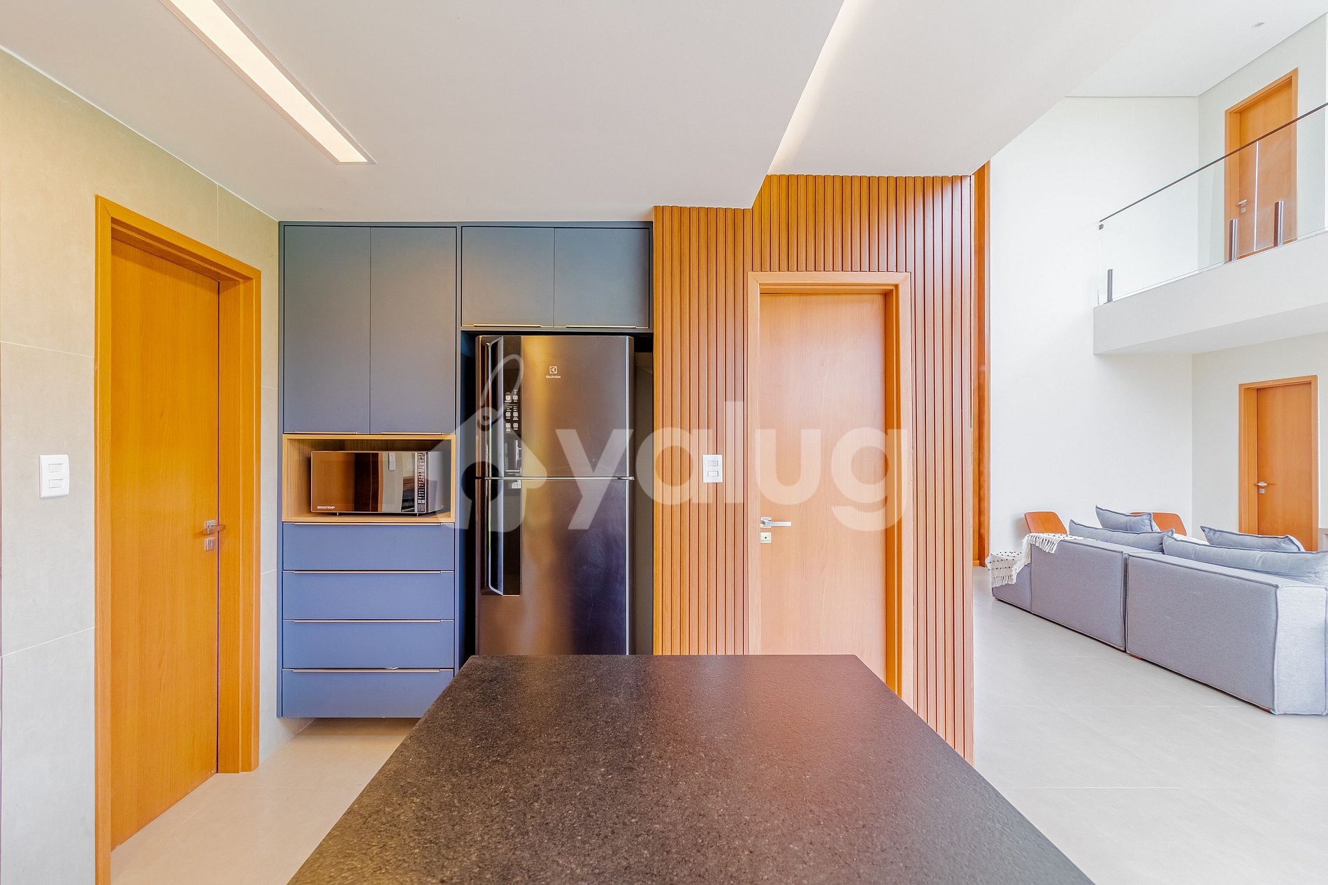 Acomoda até 14 pessoas e conta com 5 suítes (2 no andar térreo), cozinha completa integrada com a sala de estar aconchegante e com o exterior da casa, que inclusive é a melhor parte da casa, com piscina, jardim e área gourmet com churrasqueira.