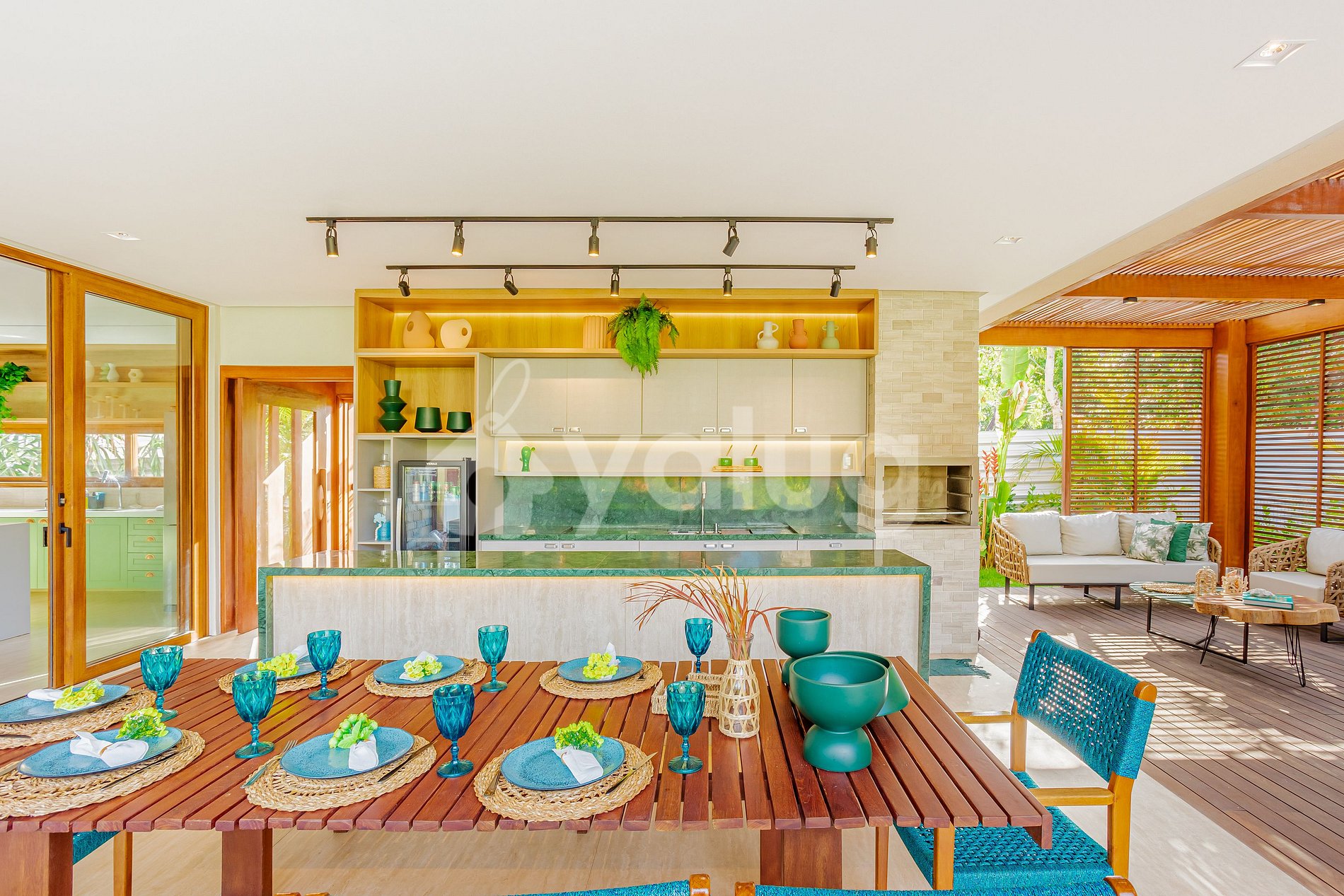 A casa oferece 5 lindas suítes climatizadas, sendo uma no térreo. A sala de estar é charmosa e arejada, enquanto a sala de jantar dispõe de vários assentos. A adega e a cozinha são totalmente equipadas com tudo o que você precisa. Além disso, há uma incrível área gourmet com piscina, churrasqueira, móveis externos confortáveis e uma área verde.