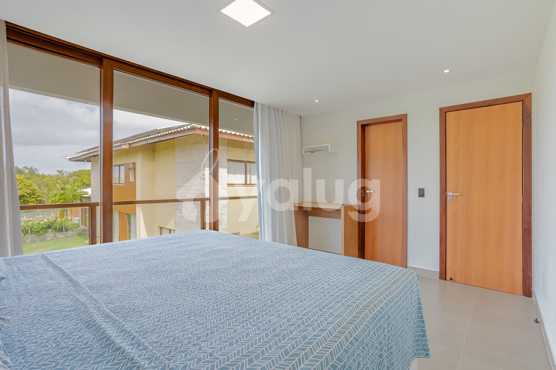 Suíte 2 (Superior): 1 cama super king, ar condicionado split, aparador, varanda e cortina blackout;
