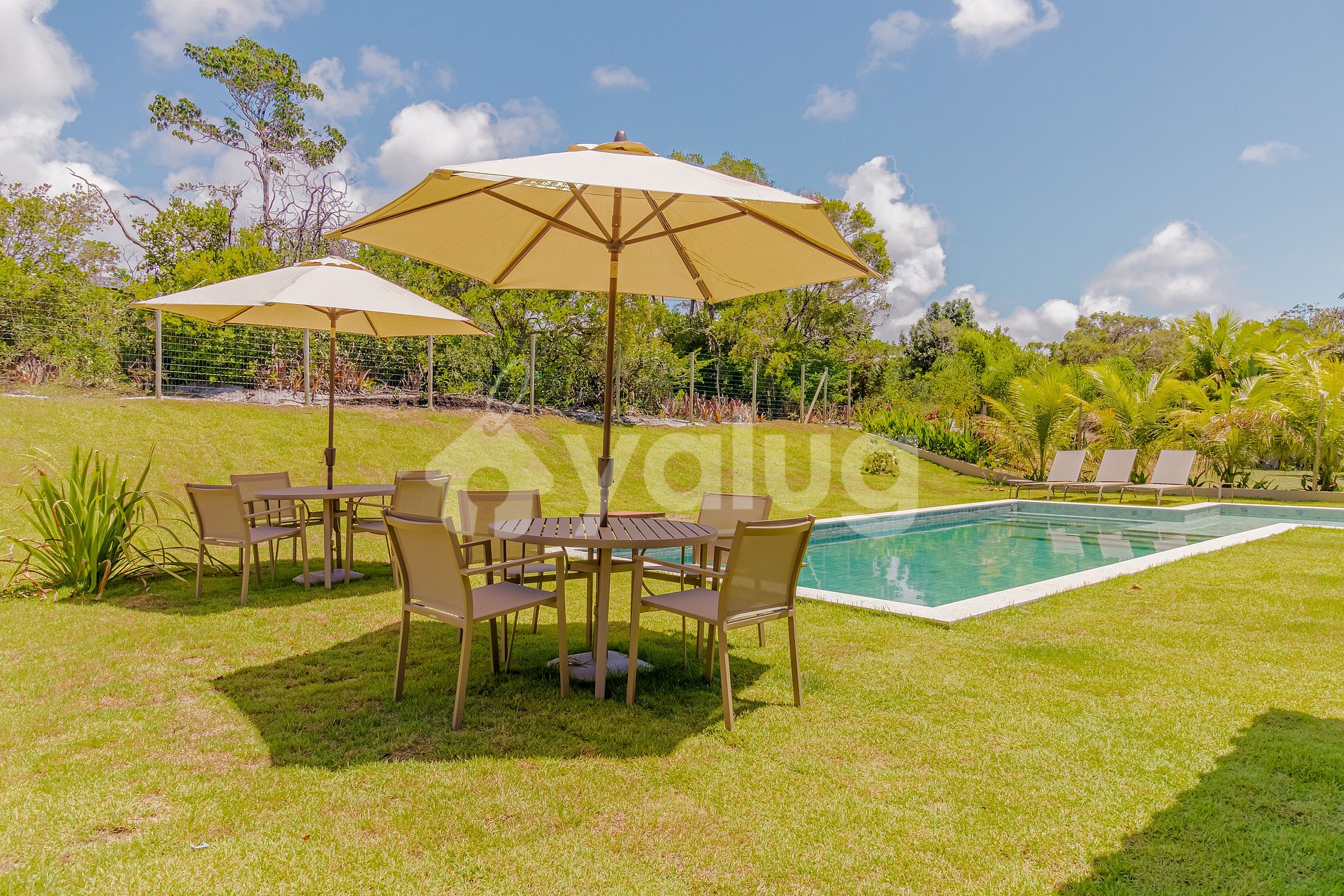 O Condomínio dispõe de 2 piscinas, quadra de tênis, quadra de beach tênis, campo de futebol, área verde (reserva de Mata Atlântica) e portaria 24h. Também possui um serviço de Transfer gratuito disponível de sexta a domingo para acesso à vila e praia. Horários de acordo com a disponibilidade.