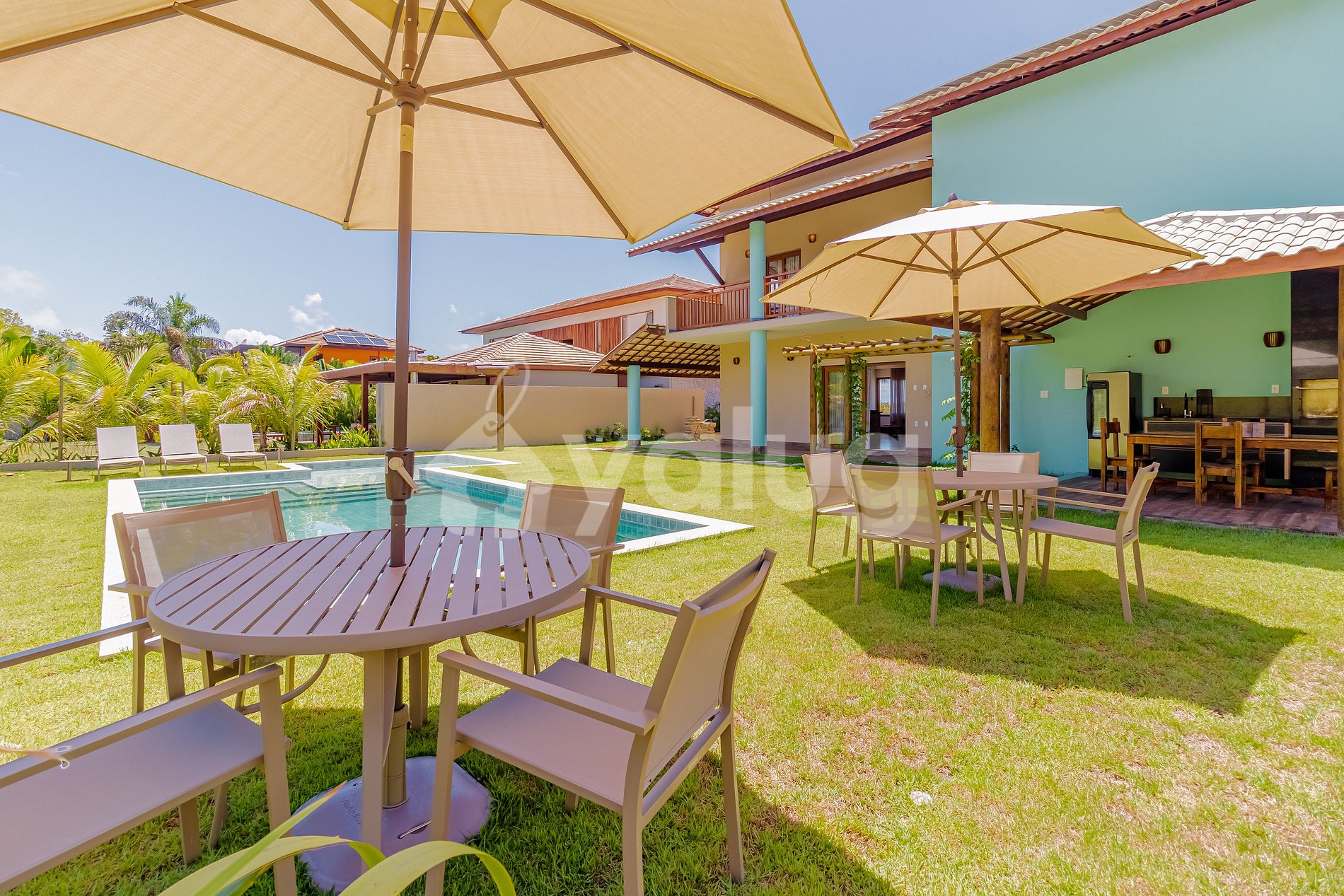 Meu espaço dispõe de ar condicionado em todas as suítes, cozinha completa, sala de estar aconchegante com Smart Tv e Wi-fi. Além disso, possui varanda gourmet com churrasqueira, uma ampla piscina e jardim.