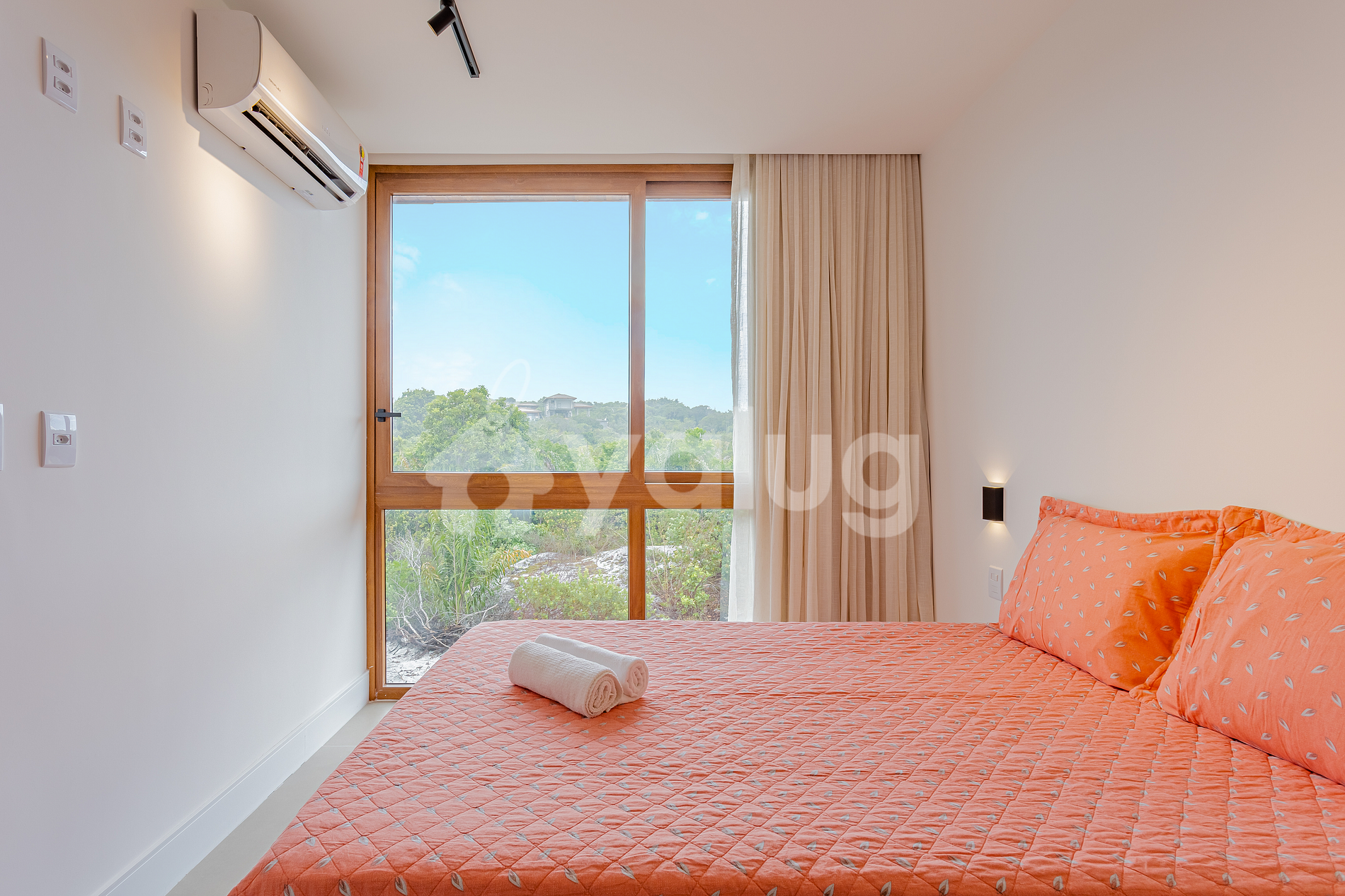 Suíte 4 (superior): 1 cama casal, 1 cama solteiro com 1 auxiliar solteiro, ar condicionado split, cortina blackout e armário;