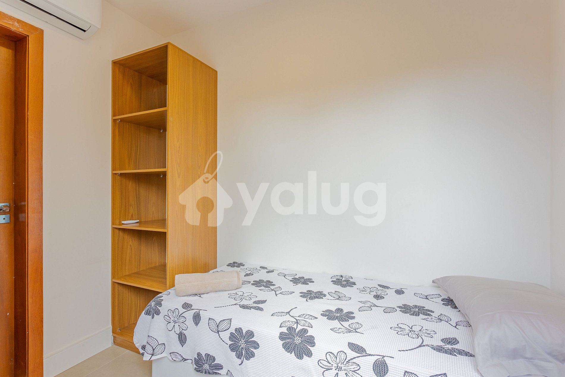 Suíte 4 (superior): 1 cama casal, 1 cama solteiro com 1 auxiliar solteiro, ar condicionado split, cortina blackout e armário;