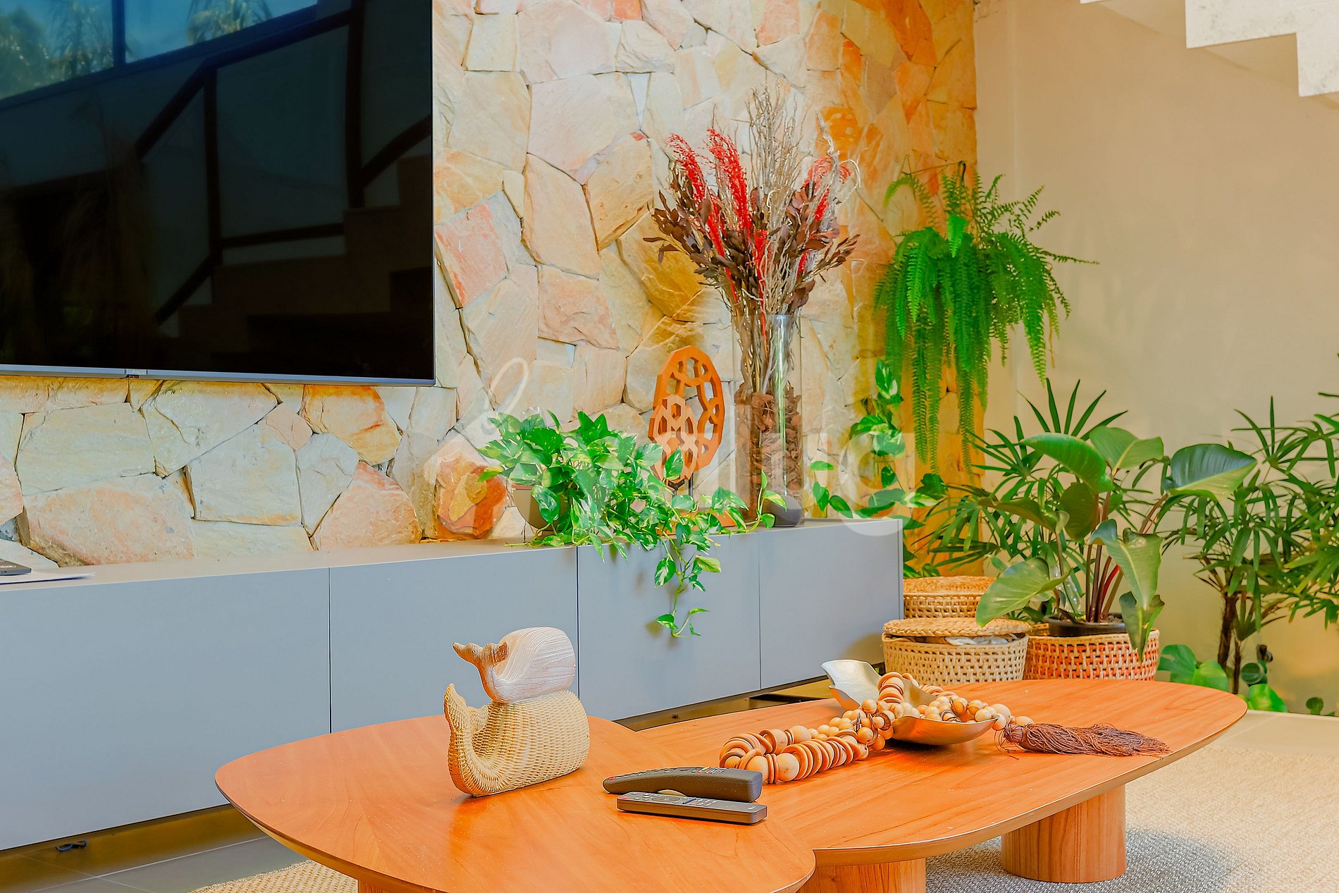 Casa de alto padrão no Condomínio Praia Bella, em Praia do Forte, ideal para quem busca conforto e privacidade. São 6 suítes climatizadas, Wi-Fi, sala aconchegante com Smart TV e cozinha completa com lava- louças. A área externa oferece piscina ampla e espaço gourmet com churrasqueira, perfeita para reunir família e amigos.