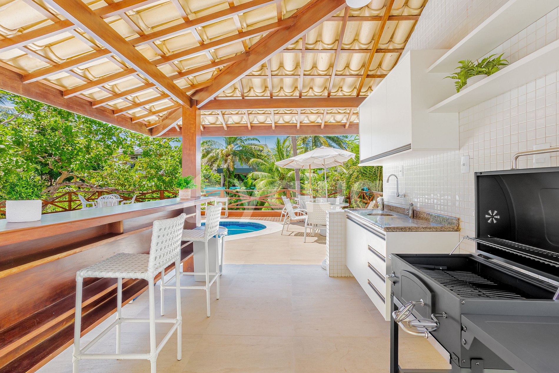 Esta maravilhosa casa conta com 5 lindas suítes (2 com jacuzzi), cozinha completa, sala de estar, TV e de jantar. A área gourmet possui incrível piscina, móveis externos, churrasqueira, jardim e píer no rio.