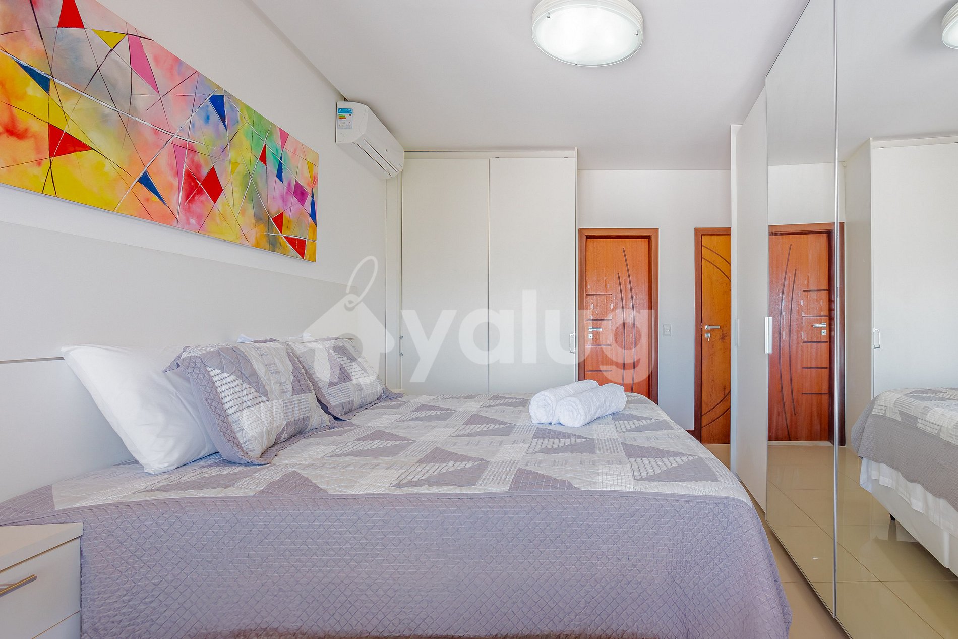 Quarto 2: Cama casal, ar-condicionado e guarda-roupas.