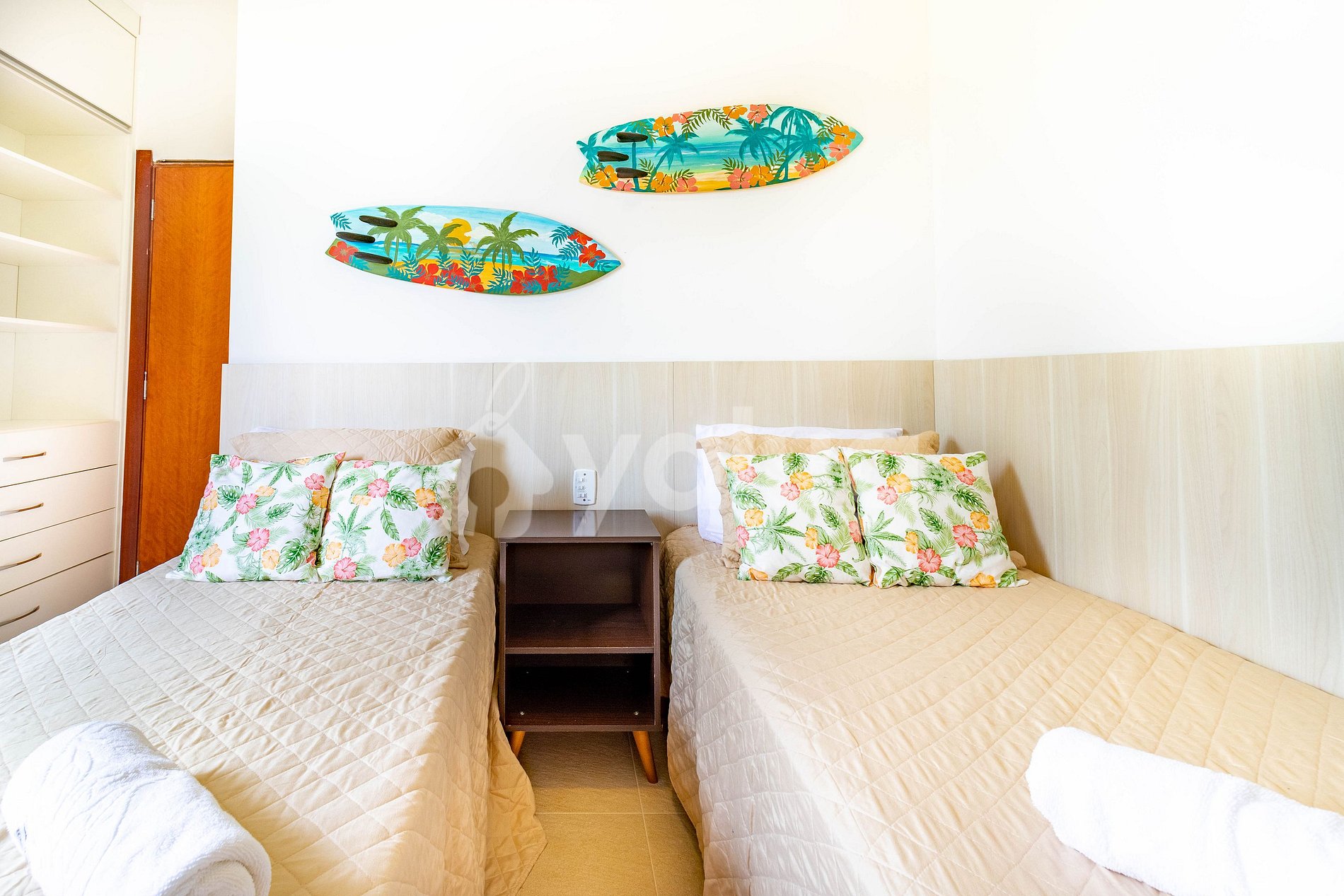 Suíte 3 (superior): 2 Camas de solteiro, cortinas blackout, ar condicionado tipo Split, ventilador de teto, armário e TV smart.