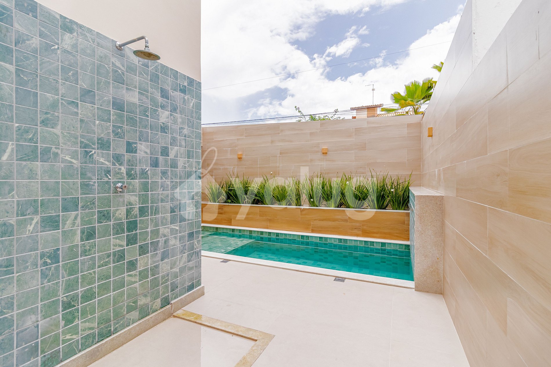 Além da área gourmet da casa, o condomínio ainda dispõe de outra piscina e também uma churrasqueira, para que os hóspedes possam desfrutar como quiserem. Também possui segurança 24 horas.