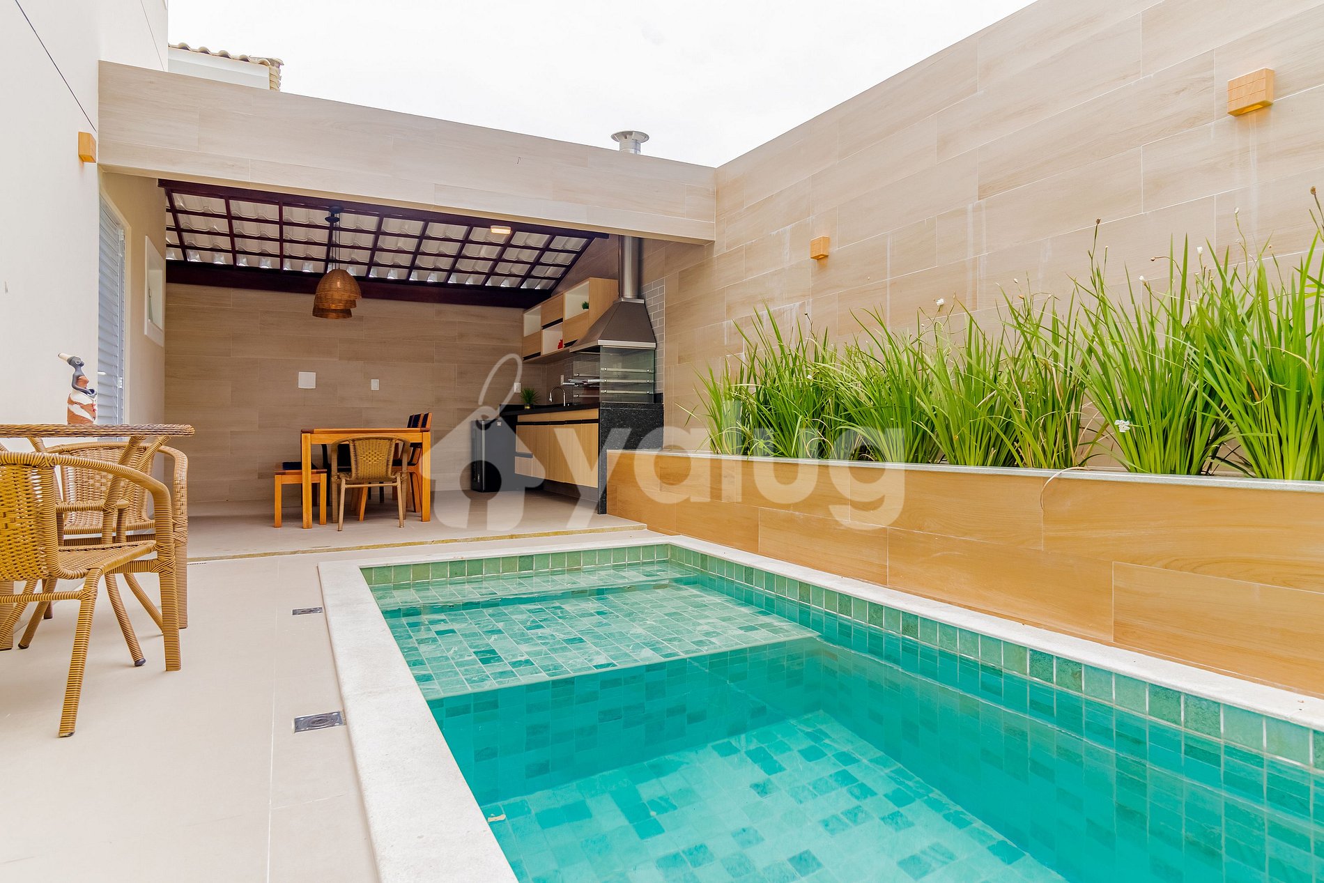 Além da área gourmet da casa, o condomínio ainda dispõe de outra piscina e também uma churrasqueira, para que os hóspedes possam desfrutar como quiserem. Também possui segurança 24 horas.