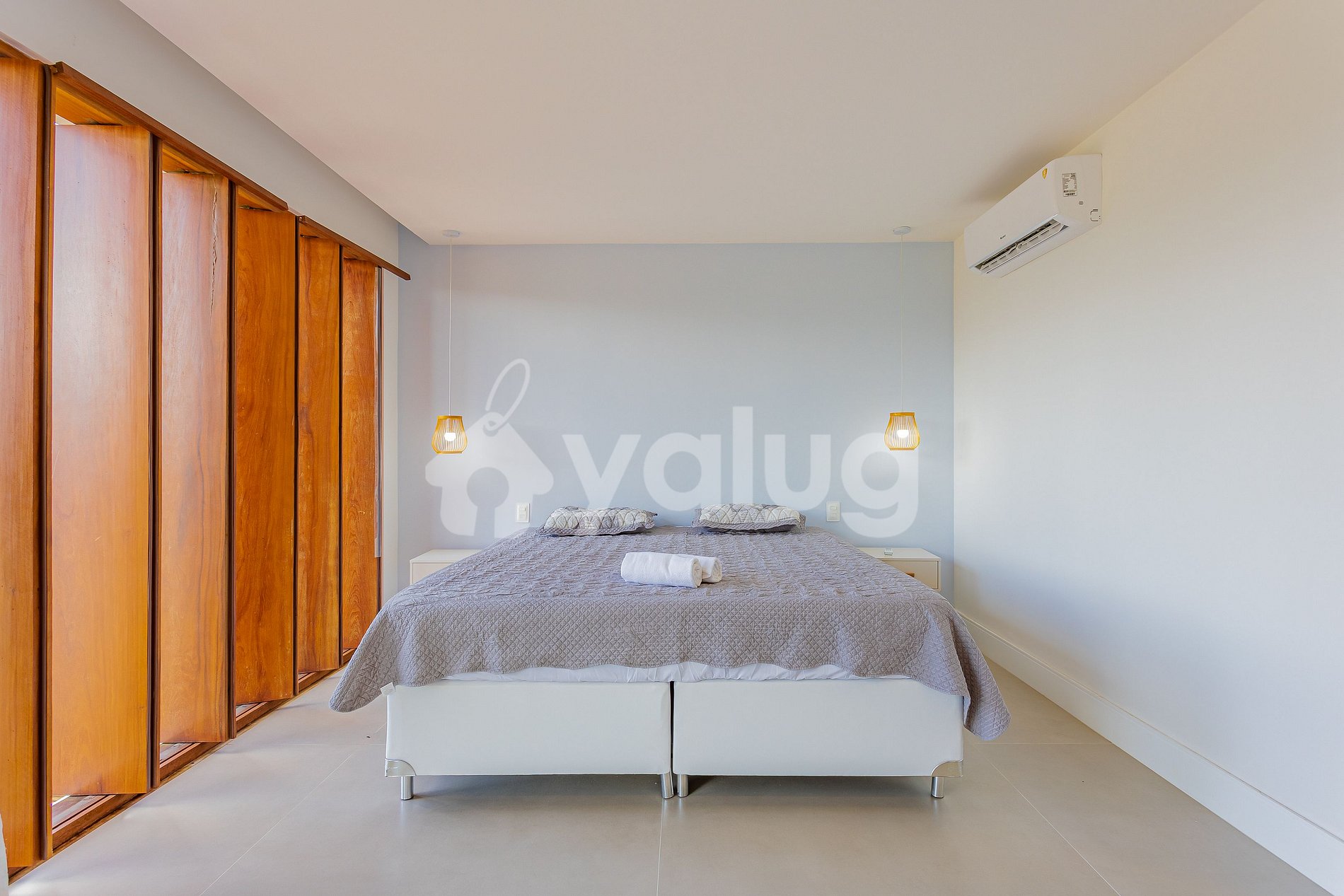Suíte 5 (superior): 1 cama king, ar condicionado split, cortina blackout e armário;