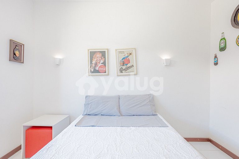 Suíte 3 (Térreo): 1 cama casal, ar-condicionado e guarda-roupas.