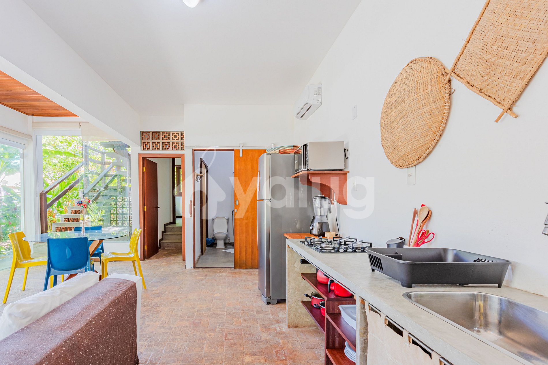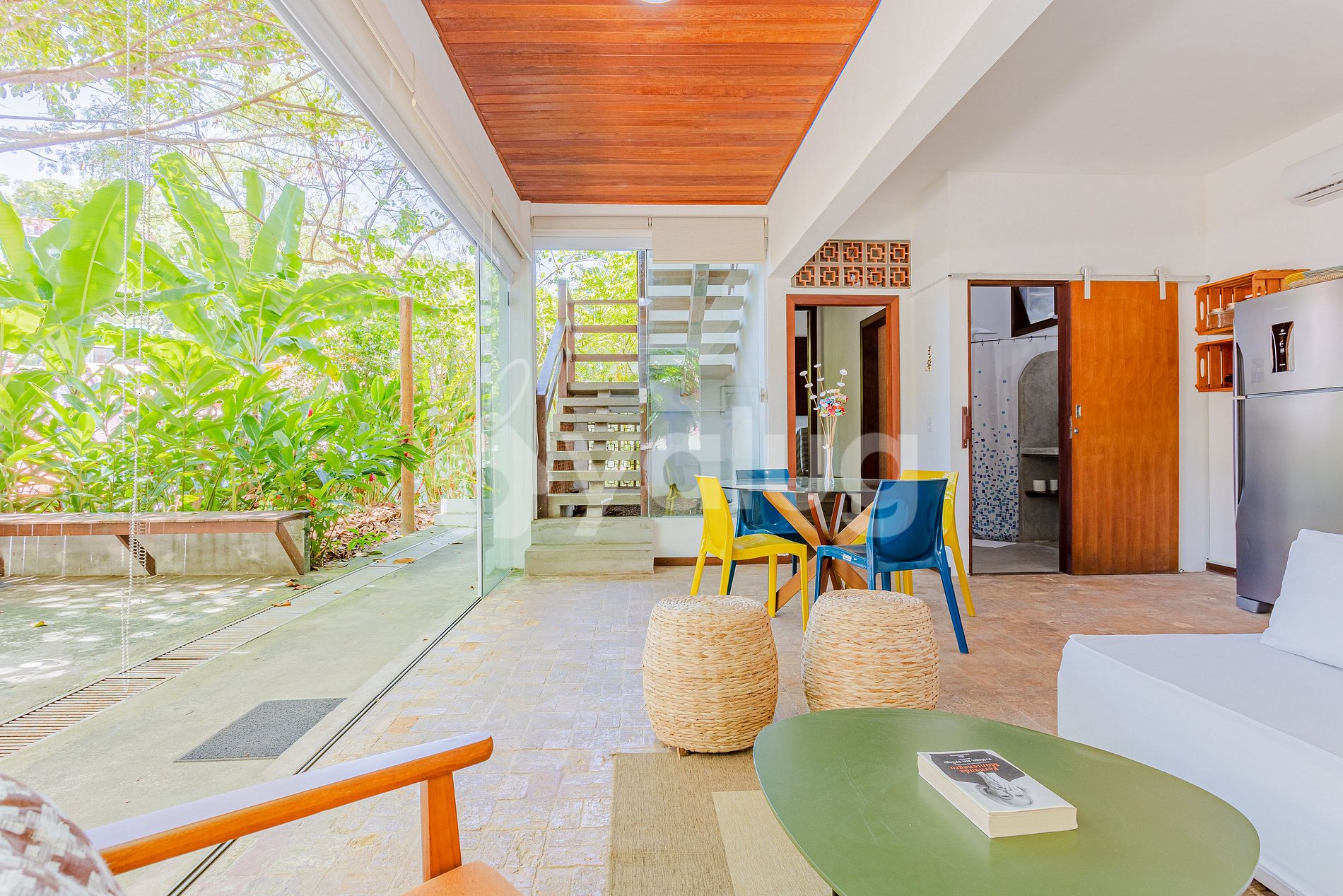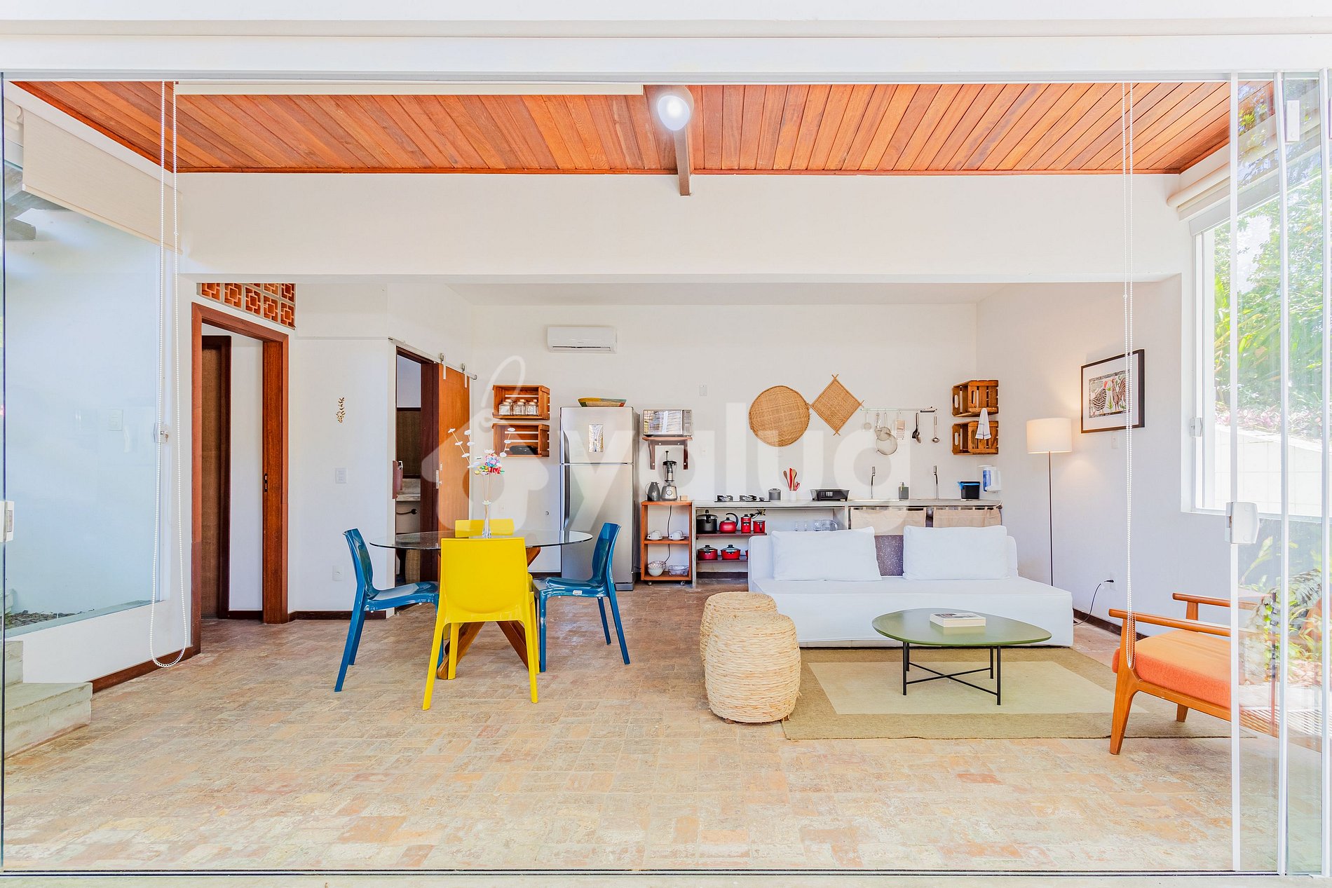 O espaço é disposto por duas casas integradas, dispondo de 3 quartos (1 suíte), todos com ar condicionado, sala de estar, cozinha completa e varanda, ótima para relaxar!