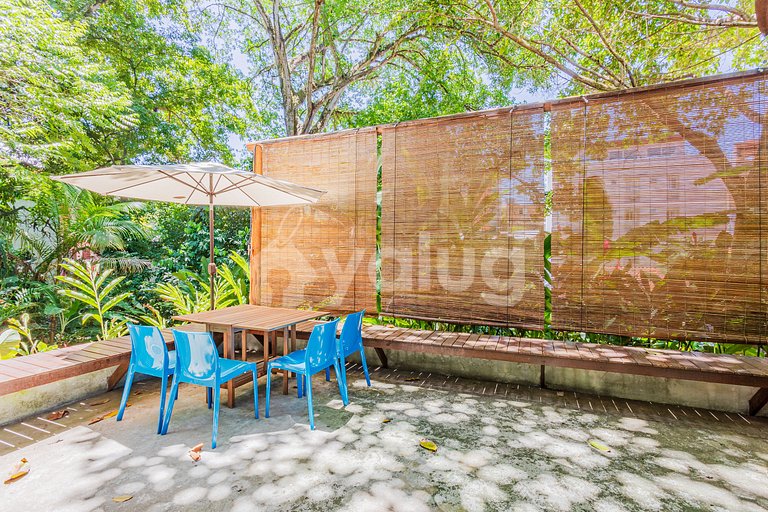 O espaço é disposto por duas casas integradas, dispondo de 3 quartos (1 suíte), todos com ar condicionado, sala de estar, cozinha completa e varanda, ótima para relaxar!