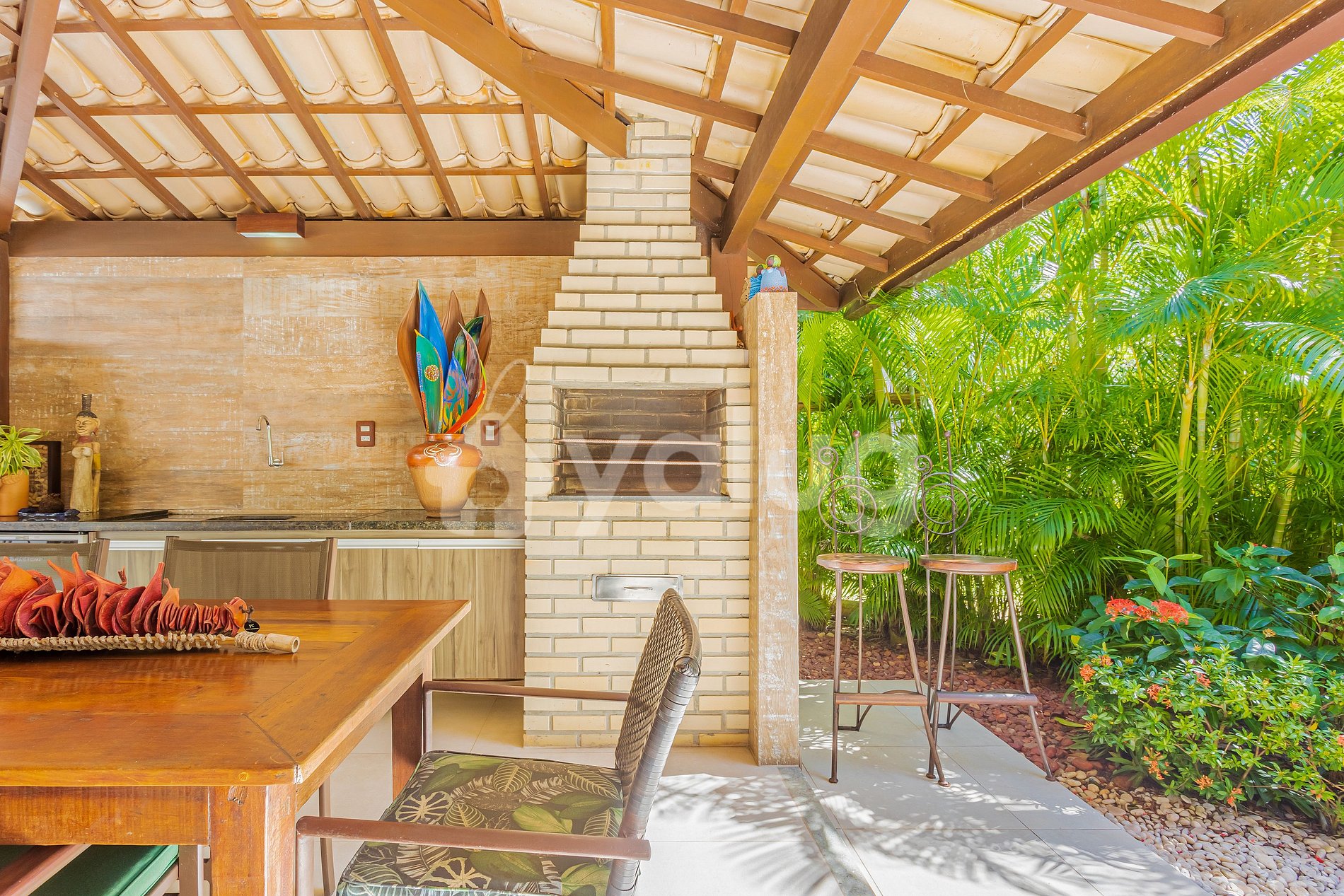 Dispõe de 3 quartos (2 suites), cozinha completa, sala de estar aconchegante e com acesso direto à melhor parte da casa: a área externa! Com maravilhoso ambiente para aproveitar e relaxar, dispõe de churrasqueira, jardim e piscina!!