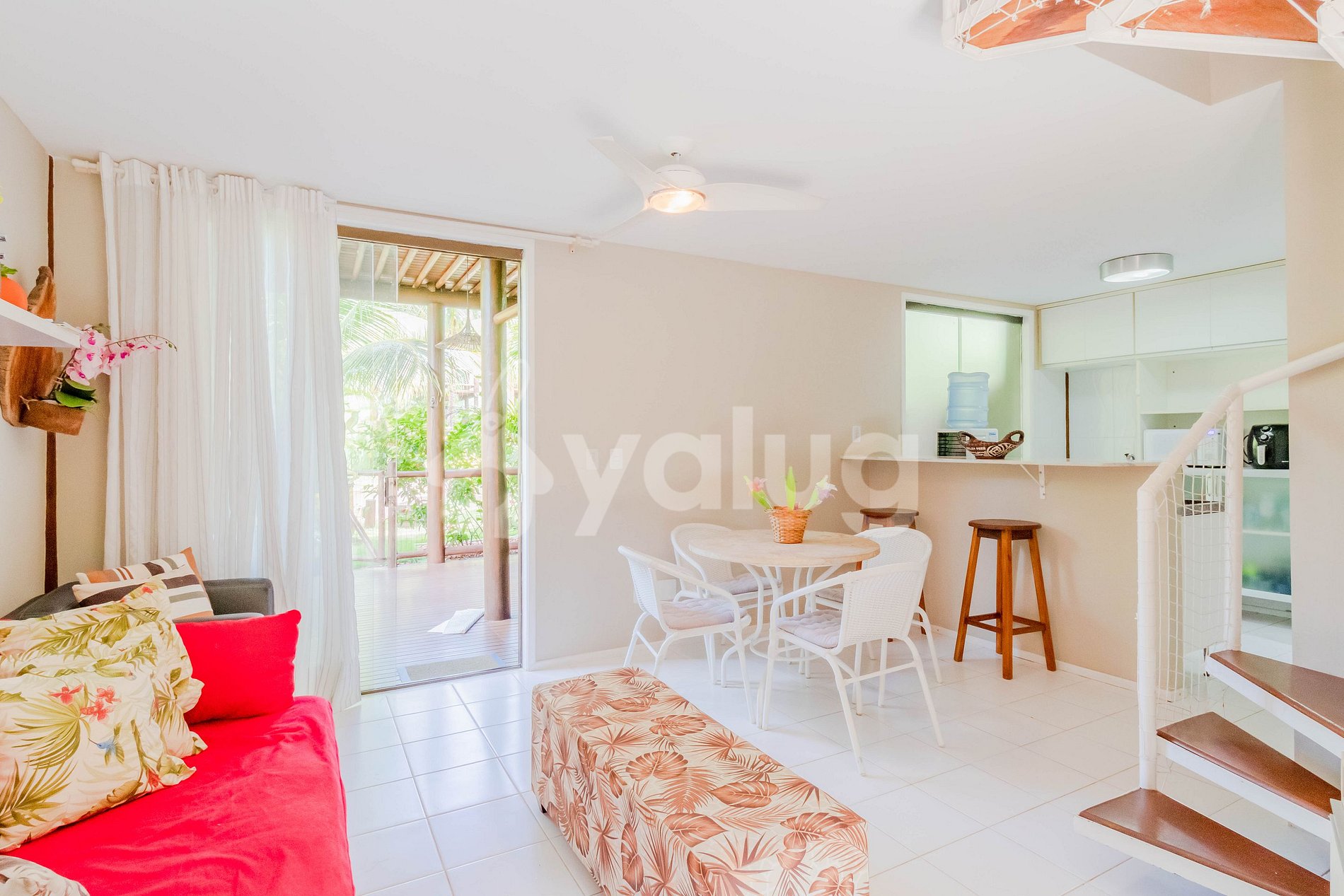 Além disso, as duas varandas do Bangalô são um convite para relaxar e desfrutar o som do mar. Benefícios que somente uma casa pé na areia pode proporcionar.