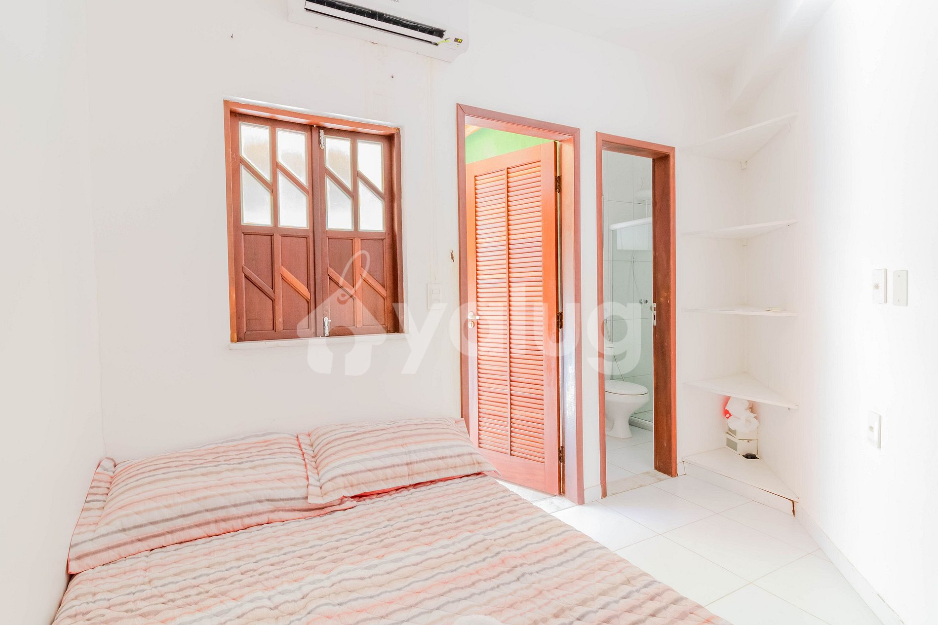 Suíte 1 (térreo): 1 cama de casal, ar condicionado, cortina, blackout e armário;