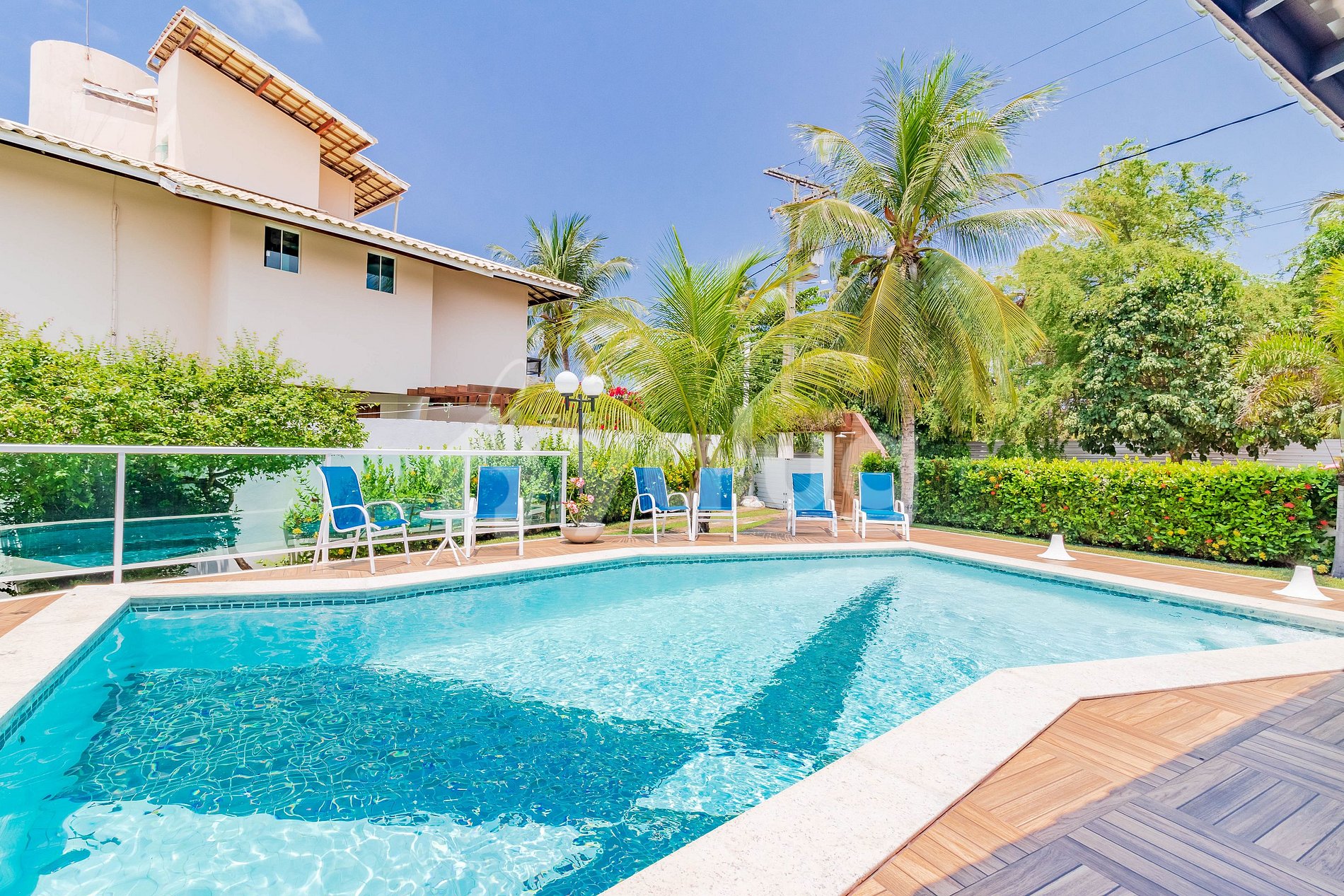 Meu espaço dispõe de ar condicionado tipo Split em 3 quartos, sala de estar e cozinha completa. Além disso, conta com maravilhosa área externa, com piscina, área gourmet coberta com churrasqueira e vista para praia!
