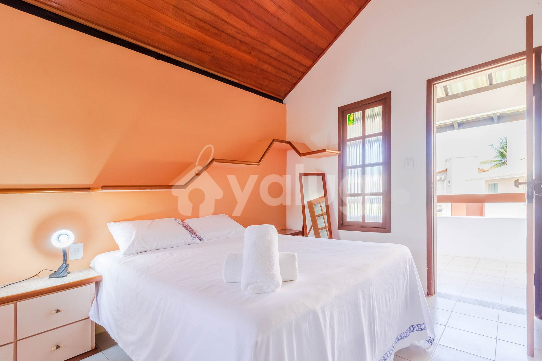 Quarto 2 (Superior): 1 cama de casal, 1 cama de solteiro, ar condicionado tipo split e varanda;