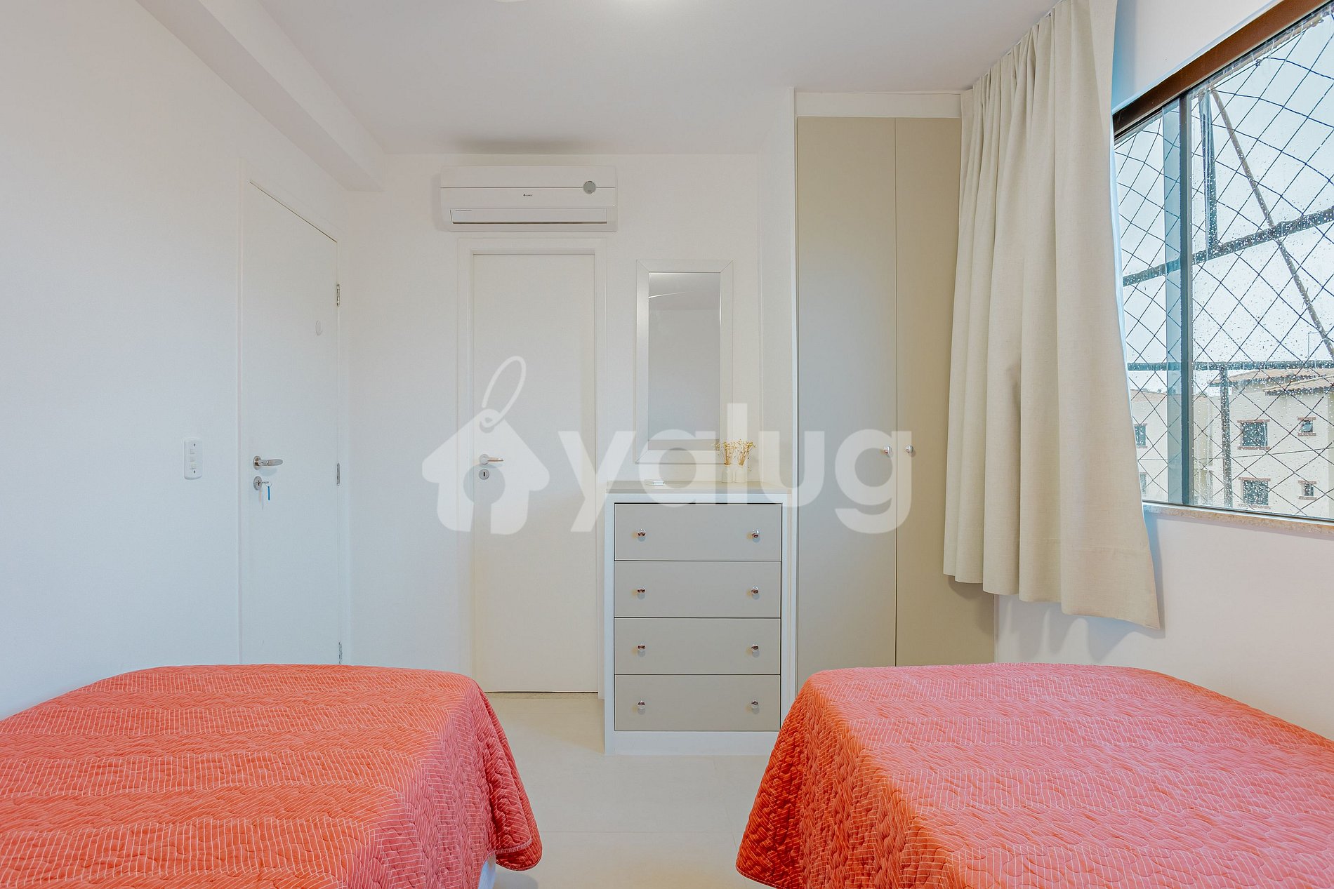 Quarto 2: 2 cama solteiro, ar-condicionado, guarda-roupas, cortina e black out.