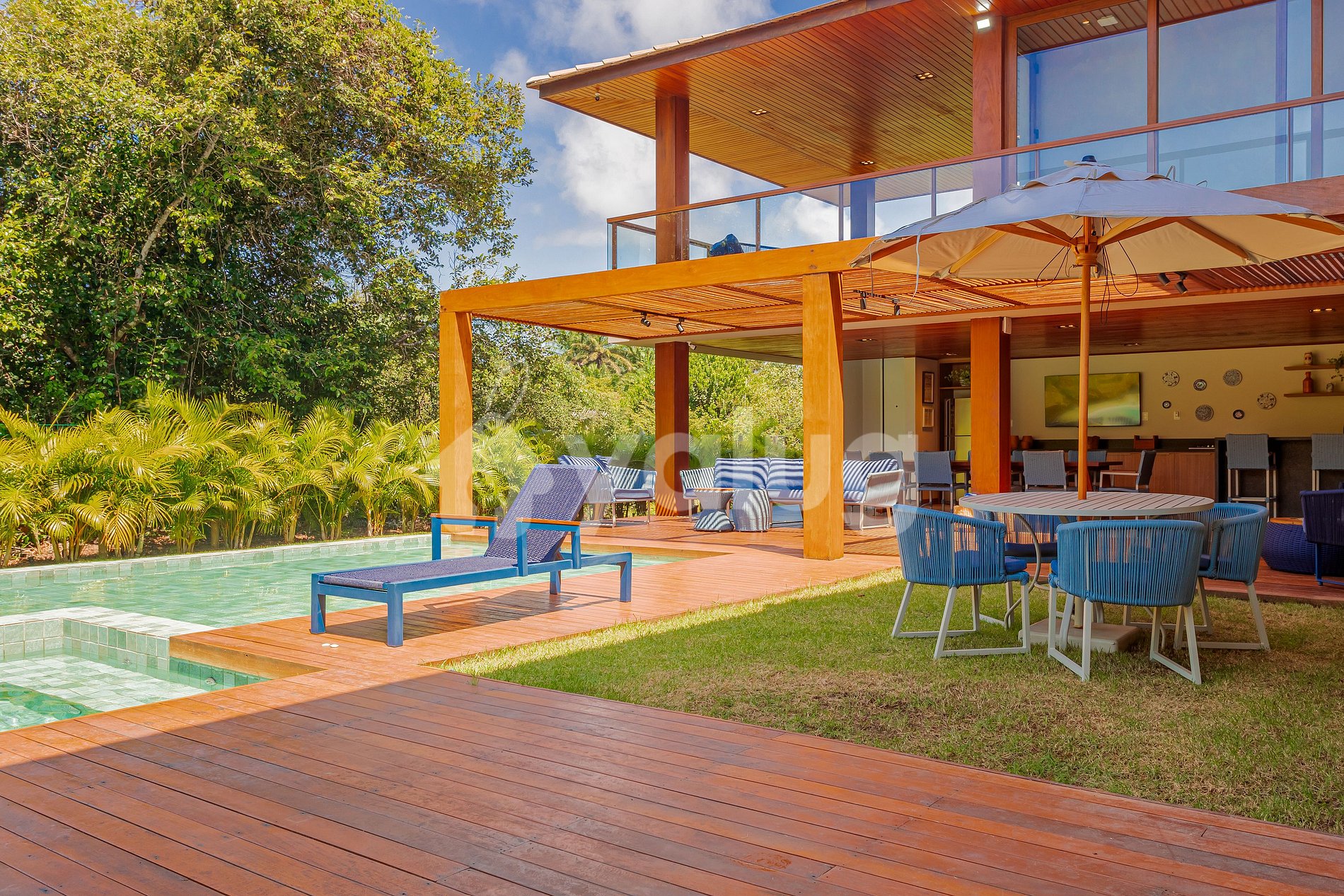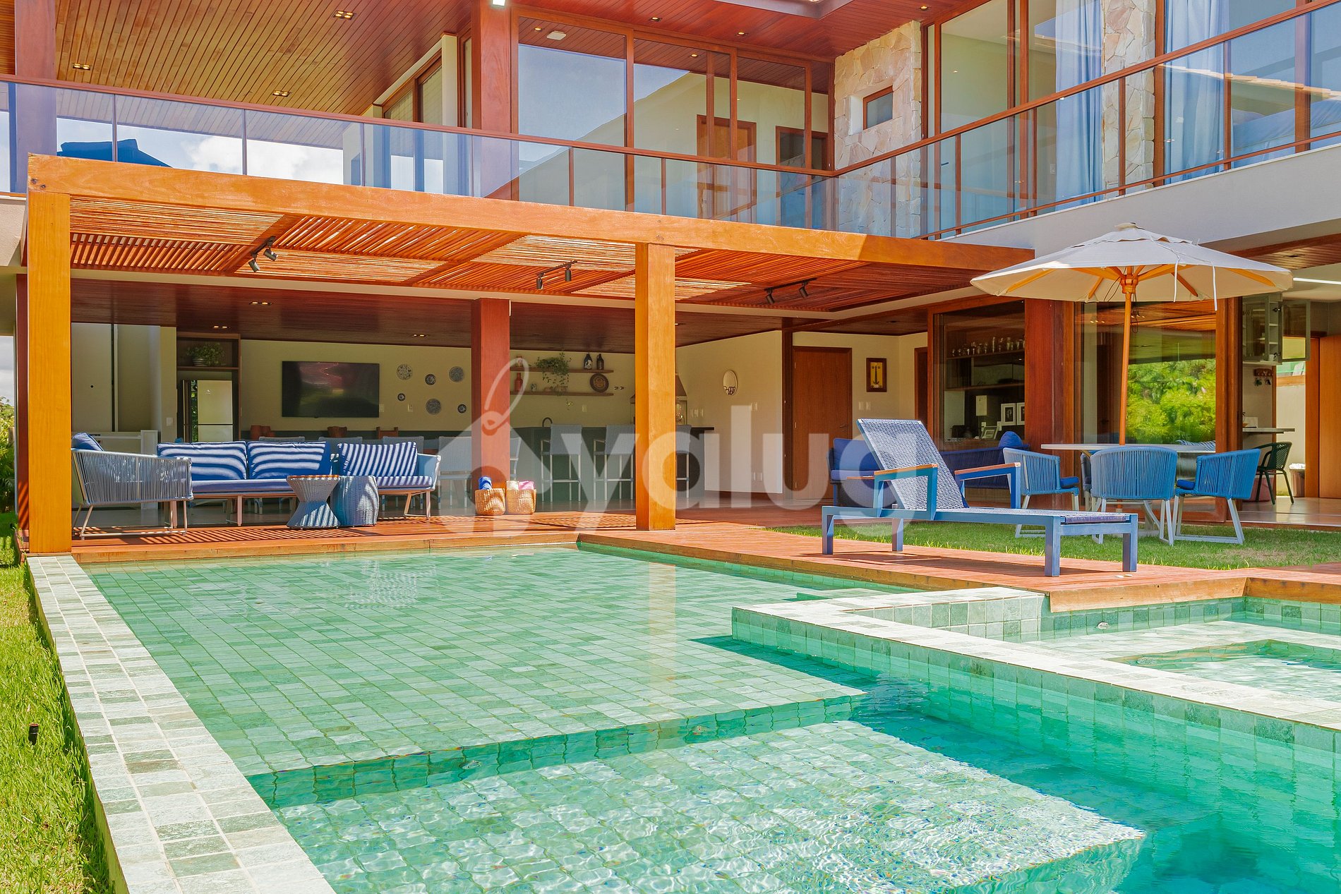 São 5 suítes (1 térreo) climatizadas, Wi-fi, sala de estar com Smart TV e cozinha completa! Na área externa ampla piscina e espaço gourmet com churrasqueira, forno de pizza e cervejeira.