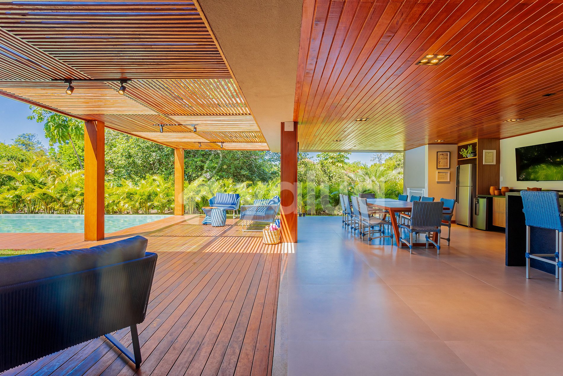 São 5 suítes (1 térreo) climatizadas, Wi-fi, sala de estar com Smart TV e cozinha completa! Na área externa ampla piscina e espaço gourmet com churrasqueira, forno de pizza e cervejeira.