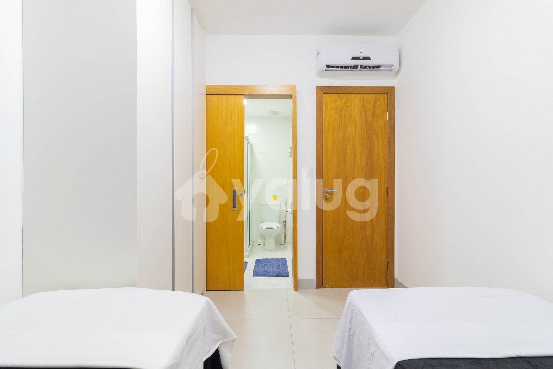 - Suíte 2: 2 camas de Solteiro, cortinas blackout e ar condicionado tipo Split.
