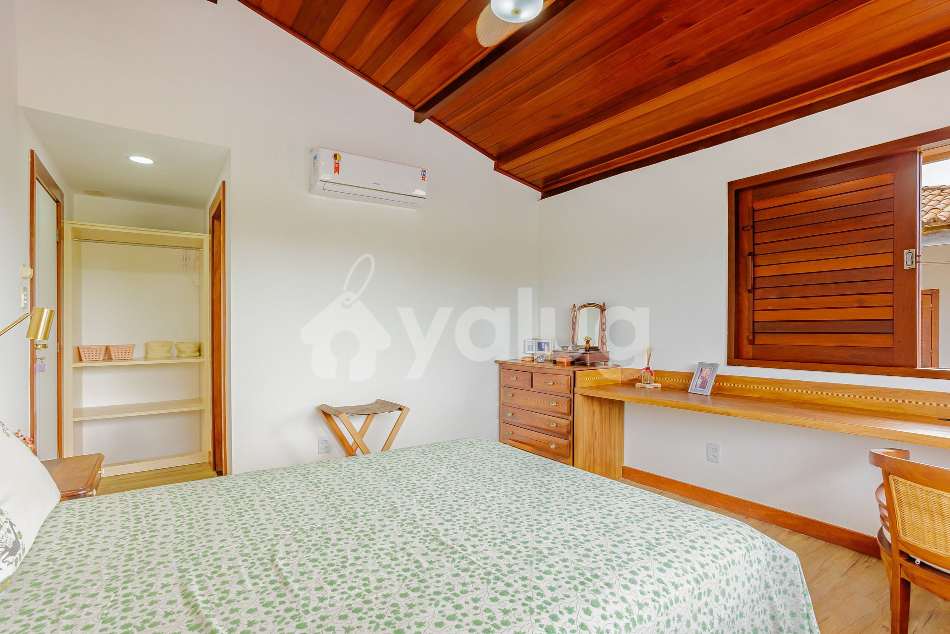 Suíte 3 (Térreo): 1 cama casal, ar-condicionado e guarda-roupas.
