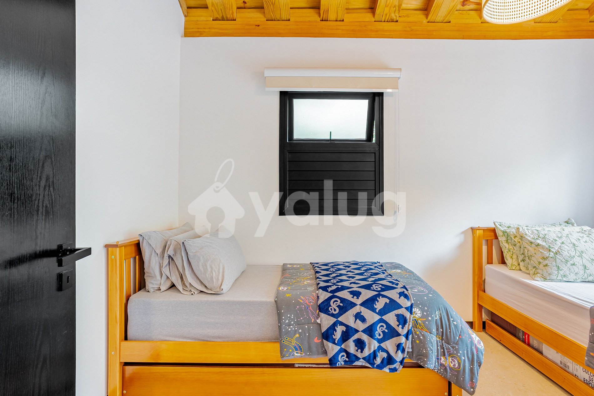 Suíte 3: 2 cama solteiro + cama solteiro auxiliar, ar-condicionado, guarda-roupa e cortina black out.