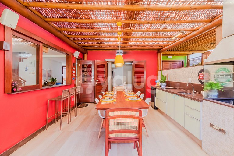 O espaço é totalmente mobiliado, equipado com sala de estar com TV, cozinha completa, ar condicionado Split em todas as suítes, uma ótima varanda com rede para relaxar e um maravilhoso espaço Gourmet equipado com churrasqueira coberta.