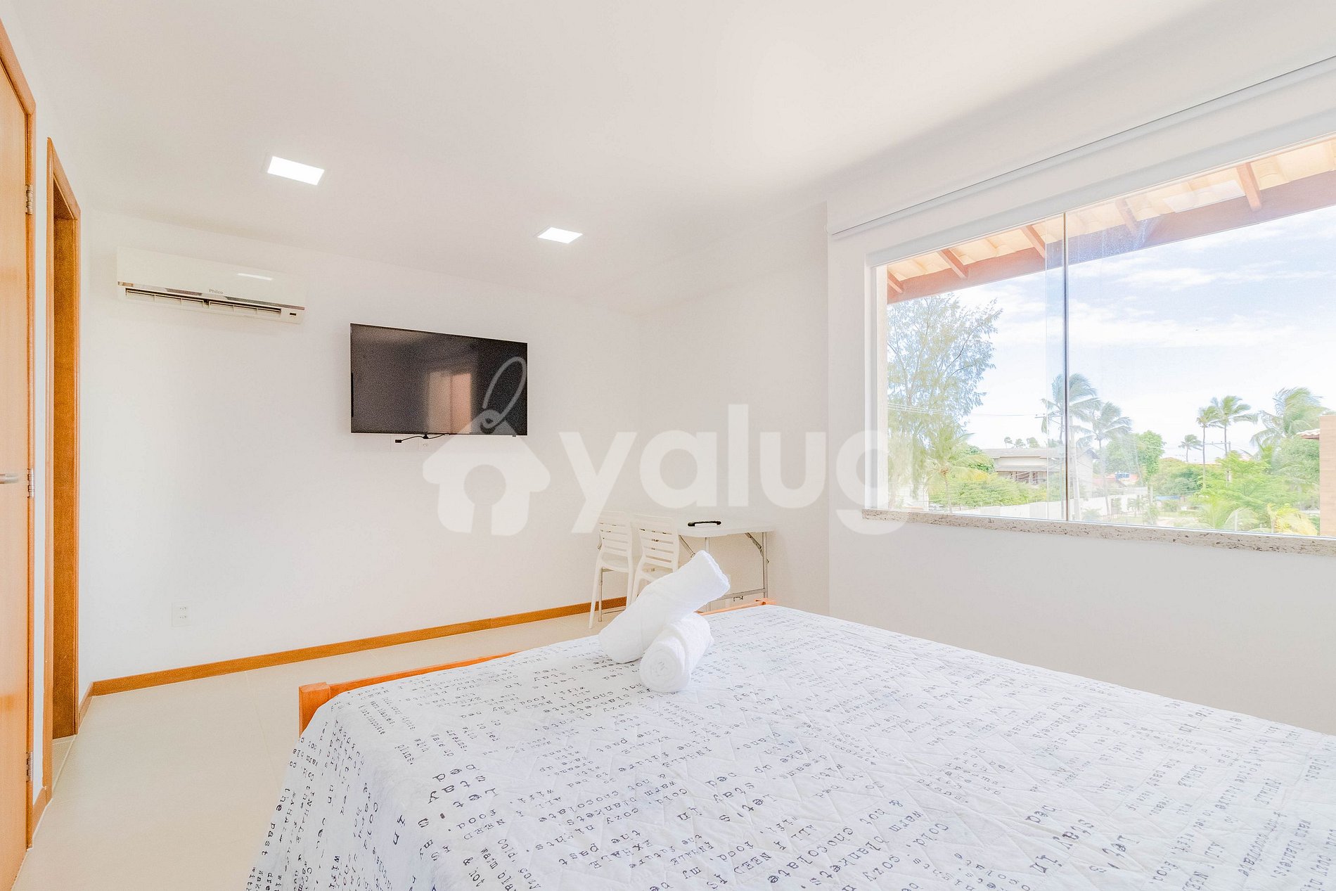 Suíte 3: 1 cama casal, ar condicionado tipo split, cortina blackout, armários e TV Smart.
