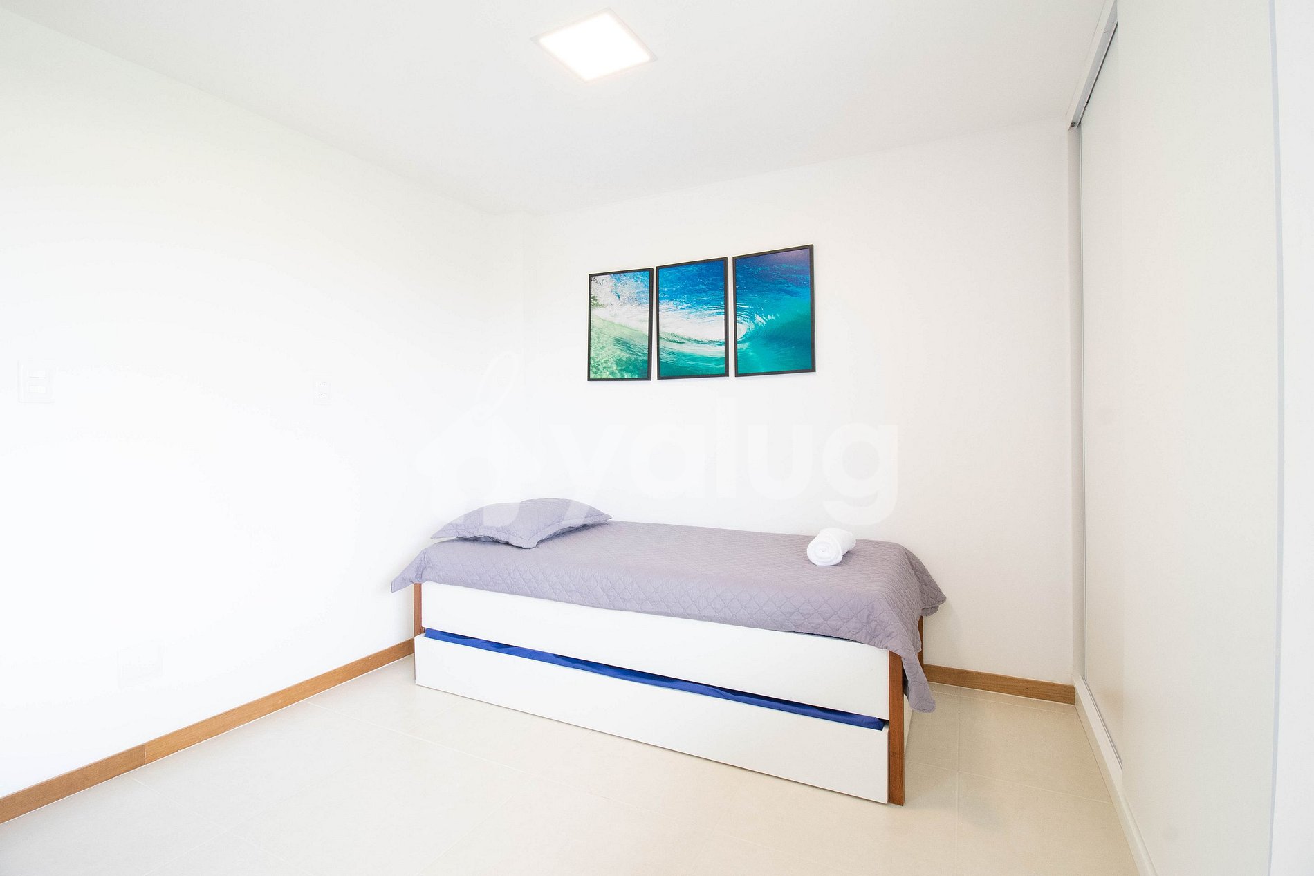 Suíte 2: 2 camas de solteiro, ar condicionado tipo split, cortina blackout, armários e TV Smart.